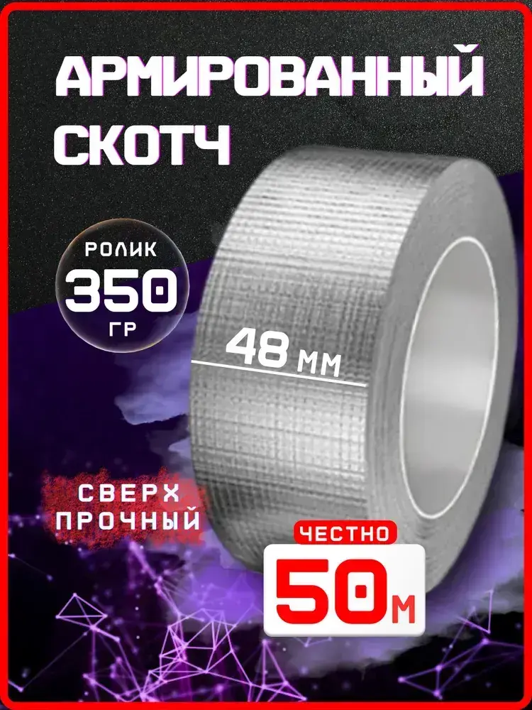 Армированный скотч 50 метров 48мм серый / серебристый 1 шт.