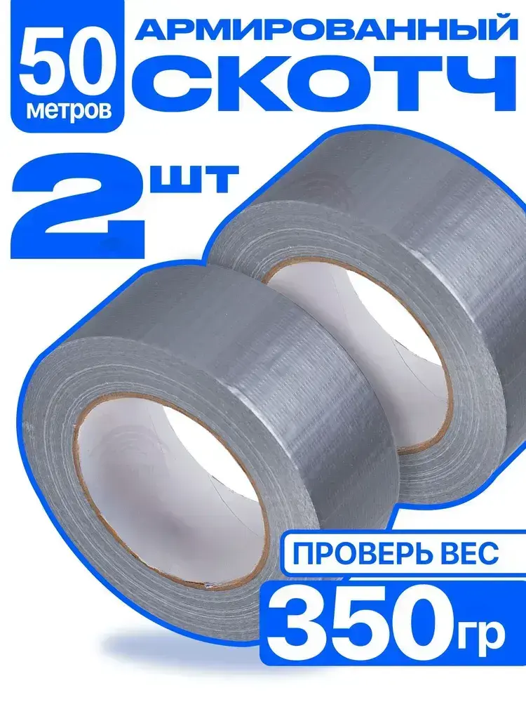 Армированный скотч Альянс Клейкая лента, 48мм*50 м, серый, 2 шт.