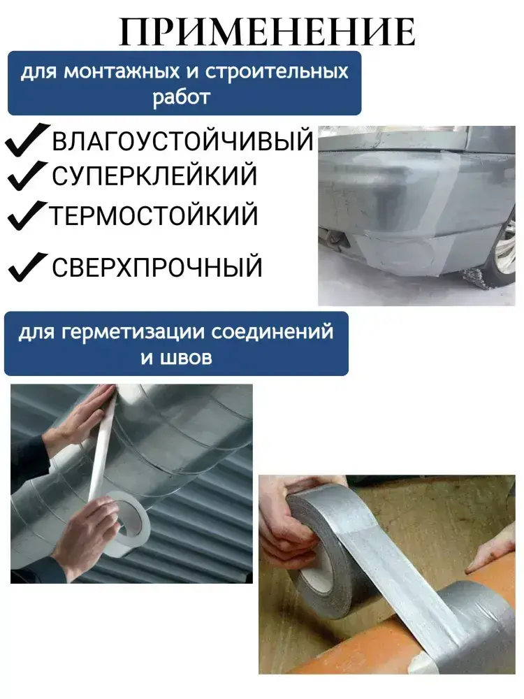 Армированный скотч, армированная клейкая лента, 48 мм x 40 метров, серый
