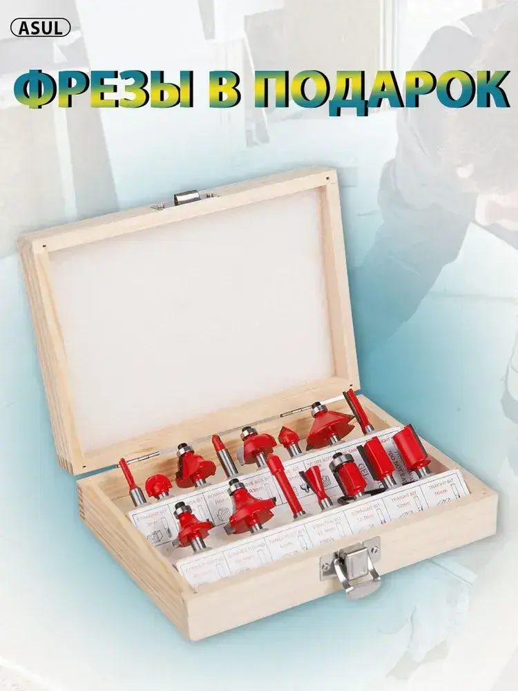 ASUL Фрезер по дереву электрический, 15 шт Набор фрез в подар