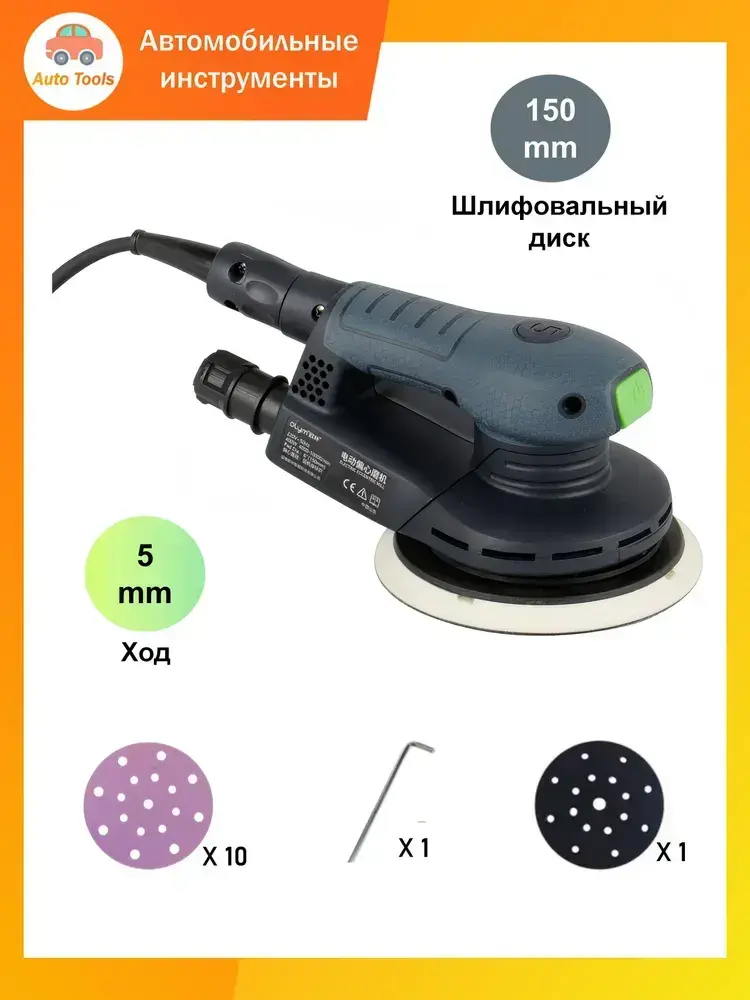 атирочная машина (Шлифовальный диск 150 мм / ход 5,0мм) OLYM, Электрическая эксцентриковая бесщеточная шлифмашинка
