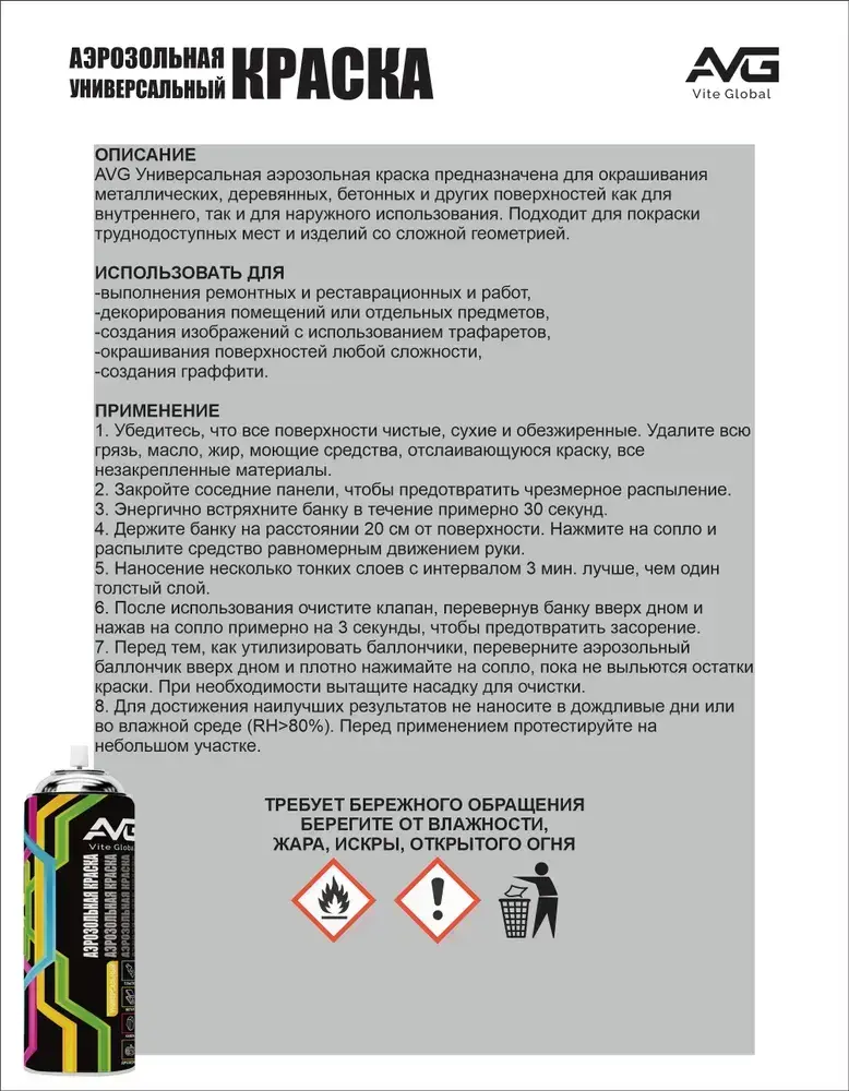AVG Аэрозольная краска 380г, RAL 9005M черный матовый