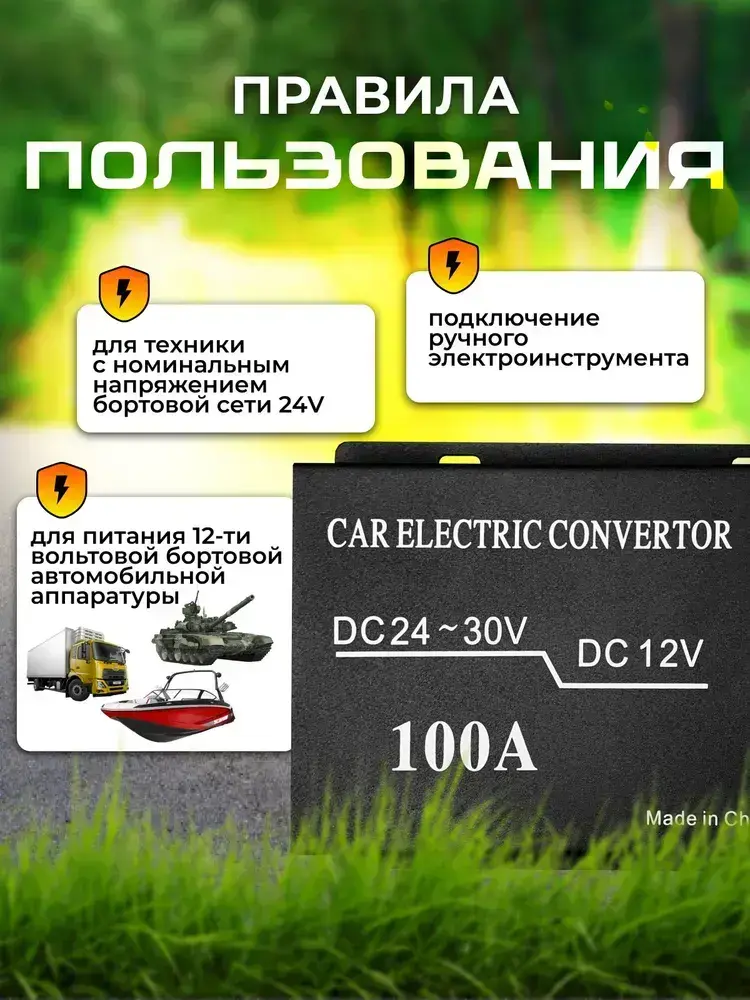 Автомобильный инвертор с 24V на 12V (100A - 1200W)