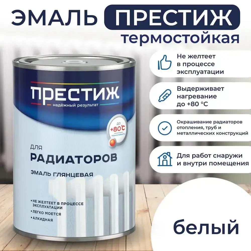 Белая алкидная эмаль для радиаторов ПРЕСТИЖ 0,9 кг. Краска глянцевая для радиаторов