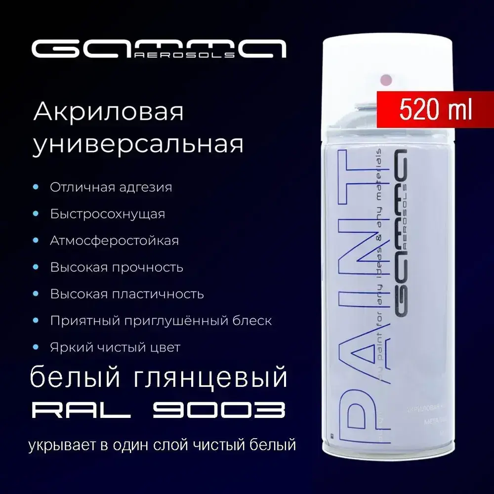 Белая глянцевая 520 мл. RAL 9003 акриловая краска аэрозольный баллончик Gamma Paint
