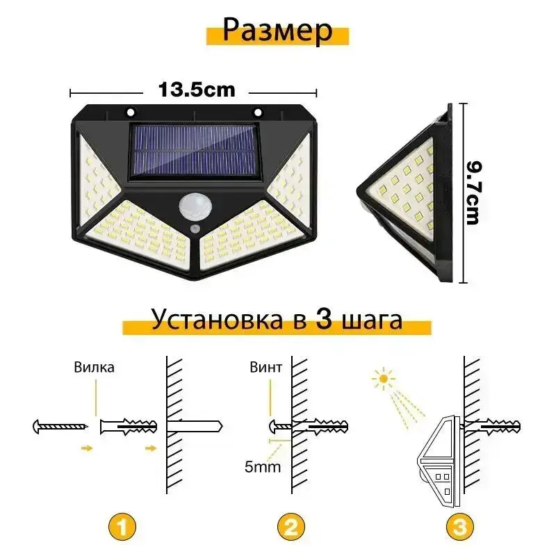 Беспроводной светодиодный светильник 2 шт прожектор с 100 LED лампами на солнечной батарее и датчиком движения