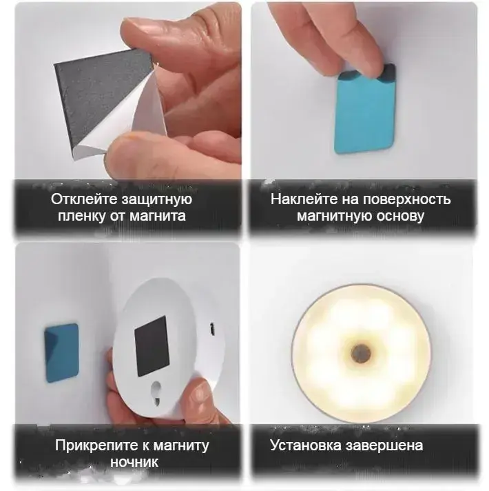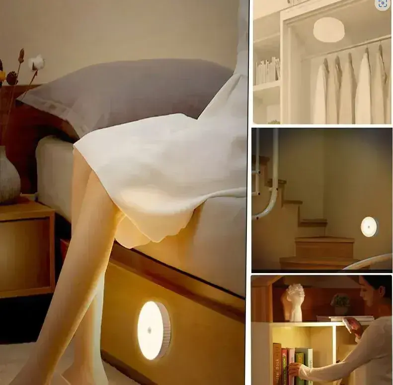 Беспроводной светодиодный светильник с датчиком движения круглый ,режим теплый