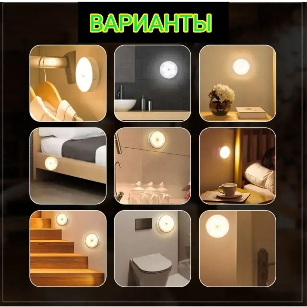 Беспроводной светодиодный светильник с датчиком движения на магнитном креплении. 2 режима освещения