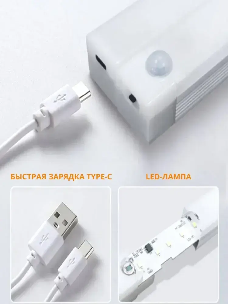 Беспроводной светодиодный светильник с датчиком движения на магнитном креплении, настенный, потолочный, 300 мм, лампа на аккумуляторе