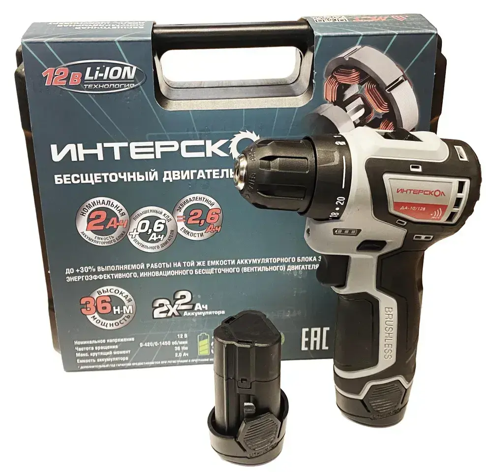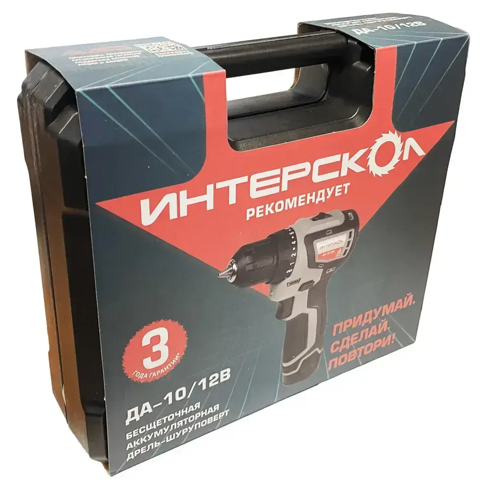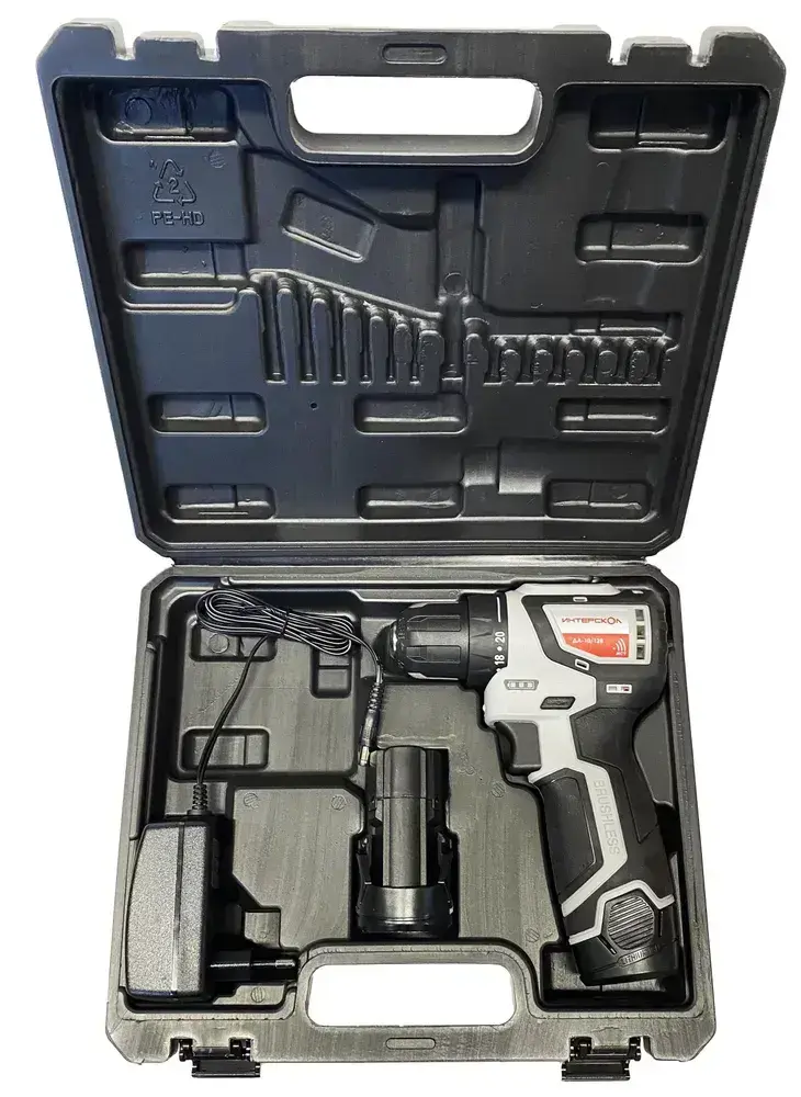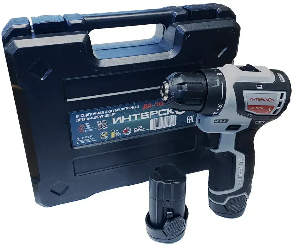 Бесщеточная аккумуляторная дрель-шуруповерт ИНТЕРСКОЛ МиниМАКС ДА-10/12В Кейс