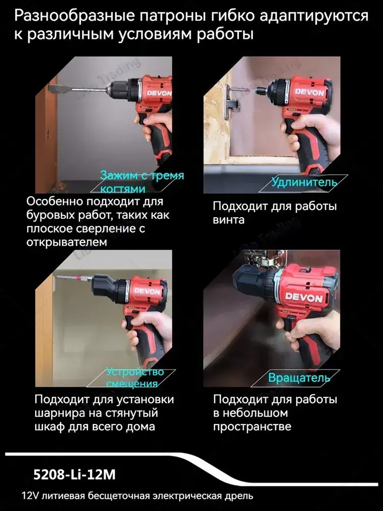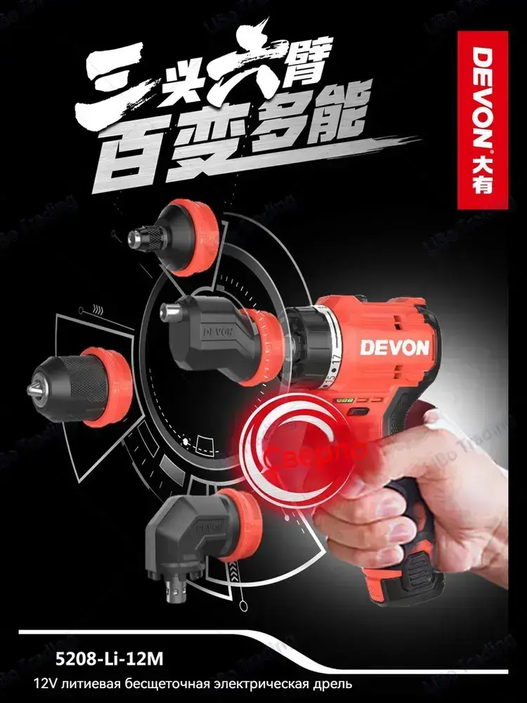 Бесщеточная электрическая дрель с литиевой батареей 12 В DEVON 5208-Li-12M Одна батарея