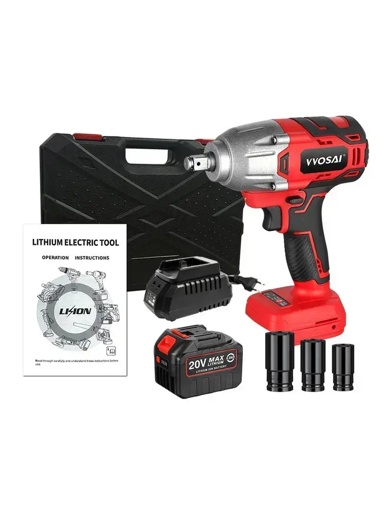 Бесщеточный Гайковерт Электроинструмент VVOSAI WS-L5-D1-3P-SX, 20В 600Нм, 1xLi-ion, ЗУ, кейс для хранения, 1 головка 17 19 21мм