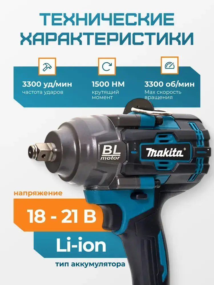 Бесщеточный ударный гайковерт Makita 1500Н.м (две батарейки, одно зарядное устройство, без пластиковой коробки)