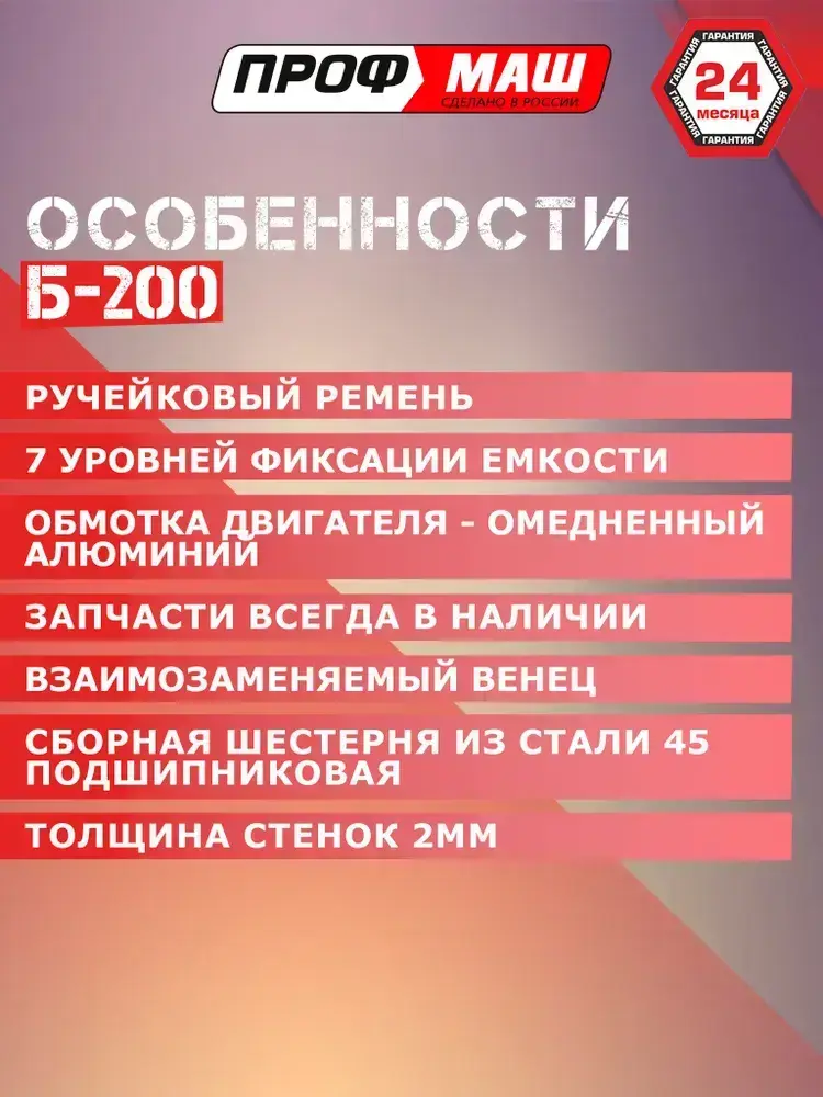 Бетономешалка Профмаш Б-200 , полиамидный венец, 1000 Вт.