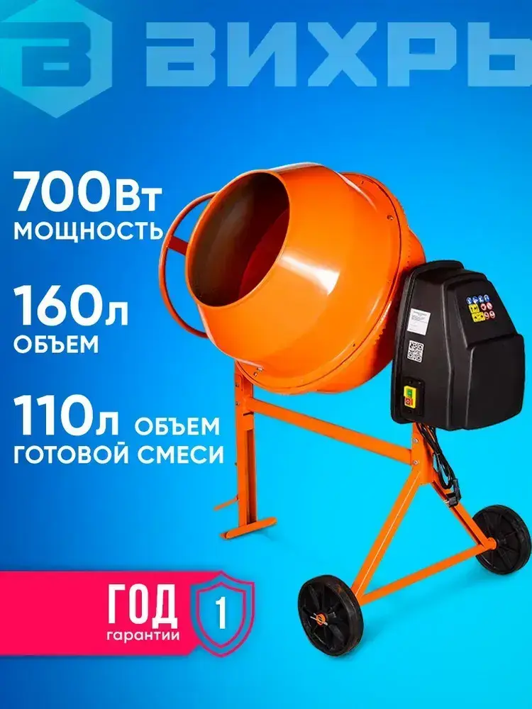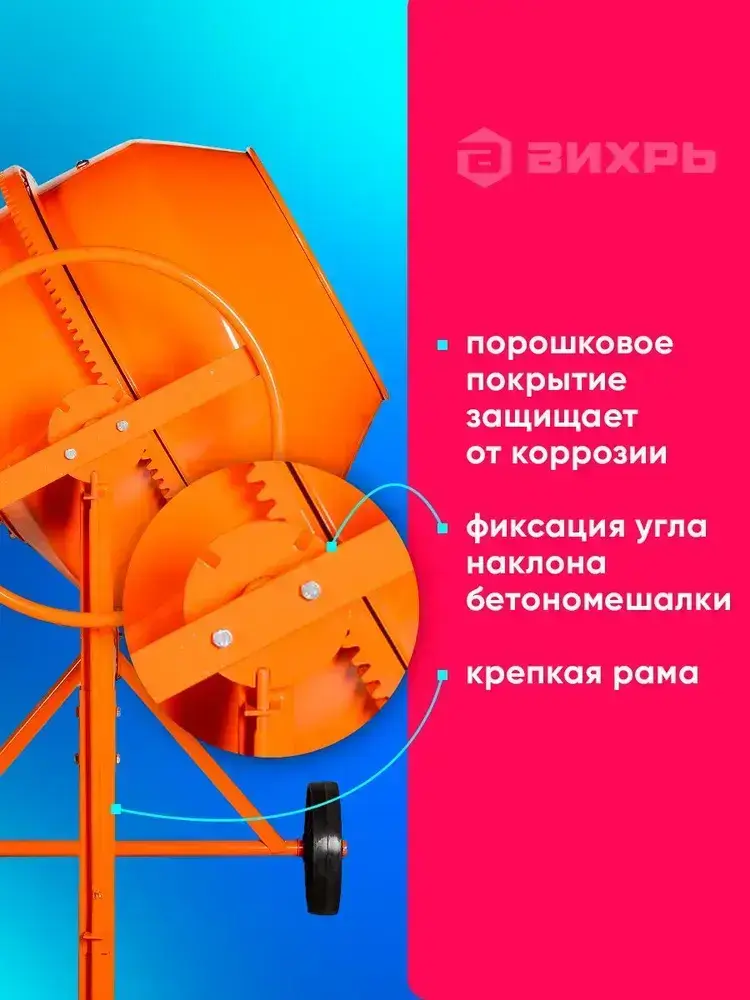 Бетономешалка строительная 160 Вихрь чугунный венец