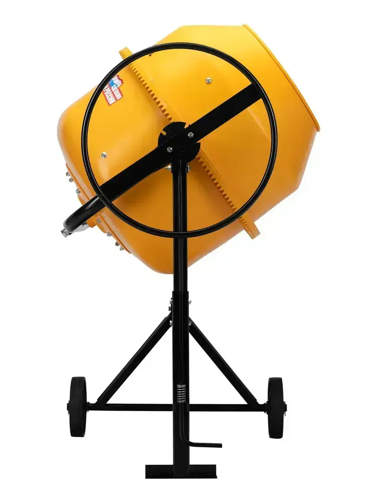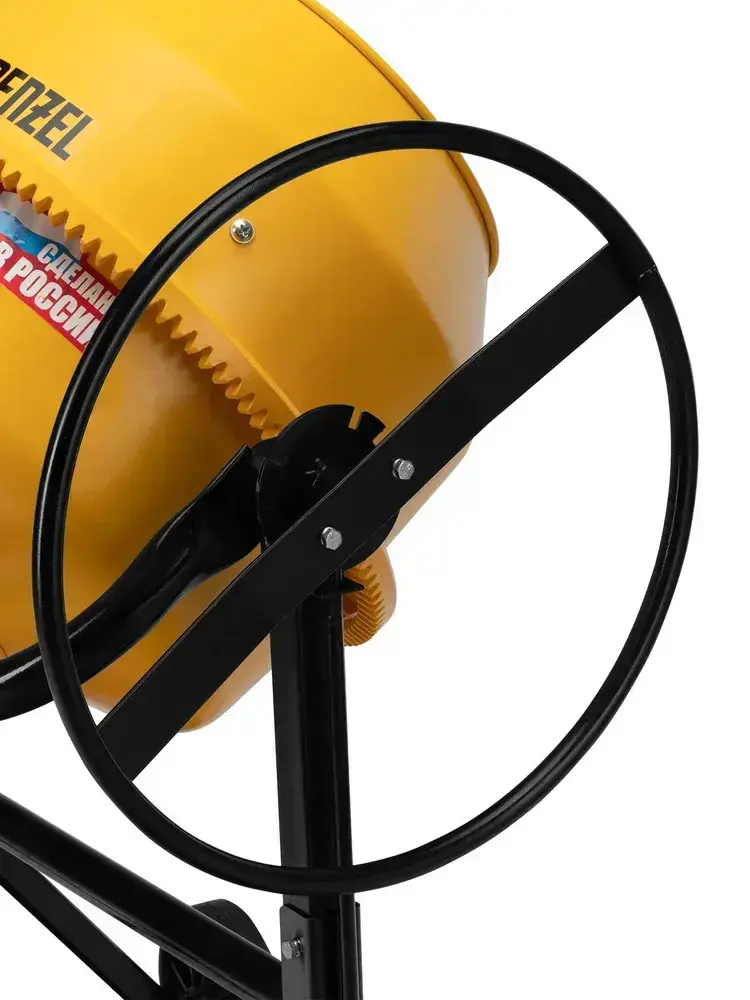 Бетономешалка строительная DENZEL B-200, 200 л объем бака и 1000 Вт мощность, чугунный венец и разъемный узел оси барабана, термозащита, кнопка аварийного выключения, бетоносмеситель 95424