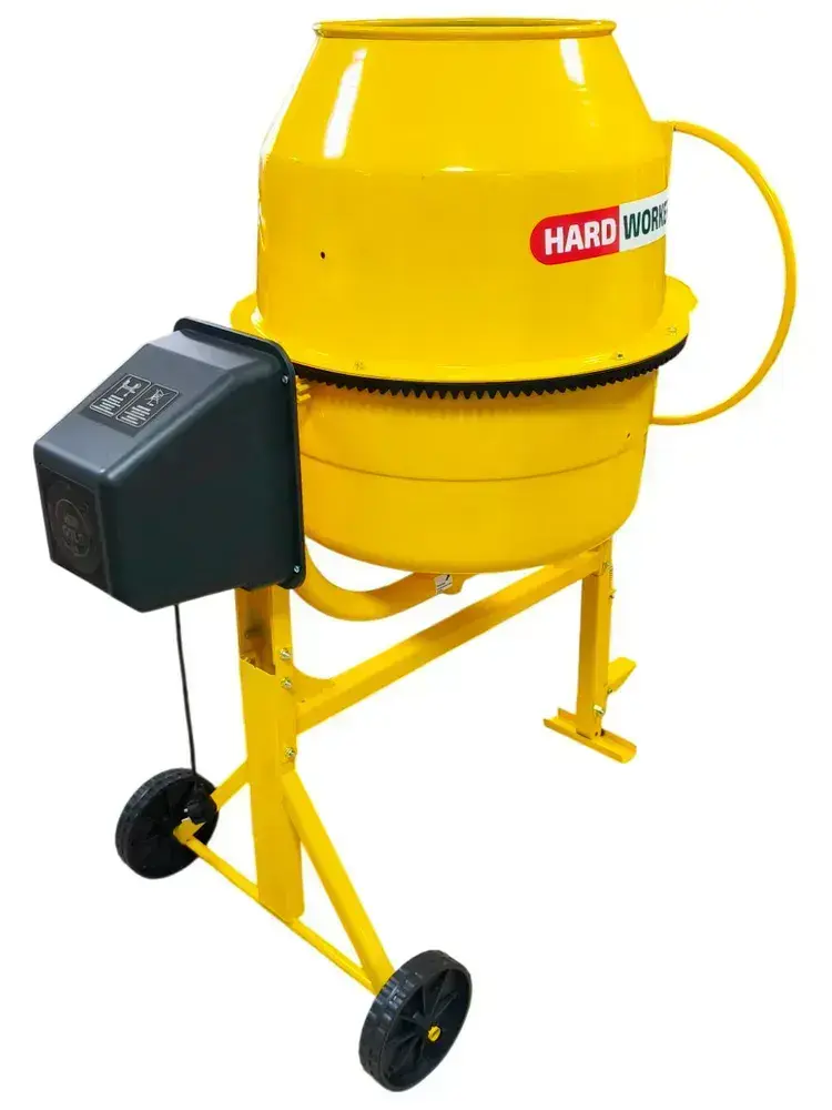 Бетономешалка строительная HARD WORKER СБП200П, бетоносмеситель электрический 1000 Вт, с педалью, полиамидный венец
