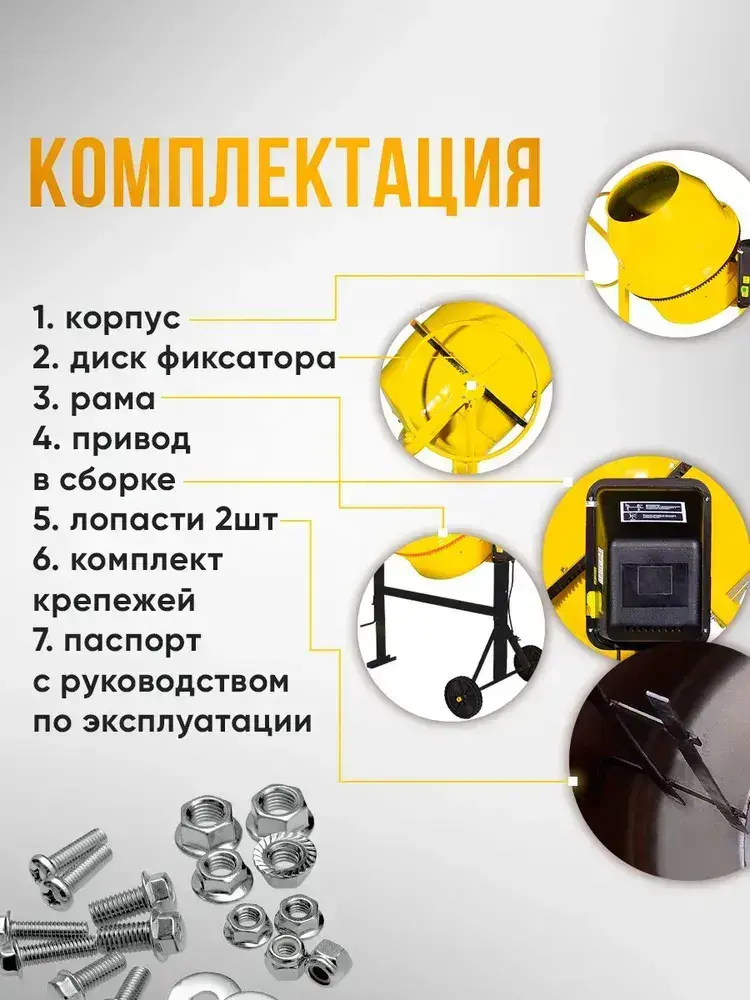 Бетономешалка строительная Huter 205л. чугунный венец, 900Вт, бетоносмеситель, поликлиновый ремень, защита от перегрева и случайного пуска