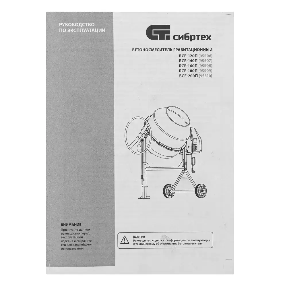 Бетономешалка строительная СИБРТЕХ БСЕ-140П, 140 л объем бака и 500 Вт мощность, полиамидный венец из 5 частей и термозащита, бетоносмеситель 95507