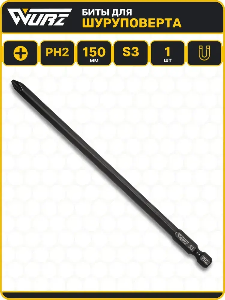 Бита PH2 x 150мм S3 1шт. намагниченная WURZ 3700-1