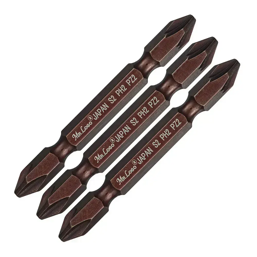 Бита PH2/PZ2 х 65мм 3шт S2 двусторонняя намагниченная Mr.Logo ML11400-4