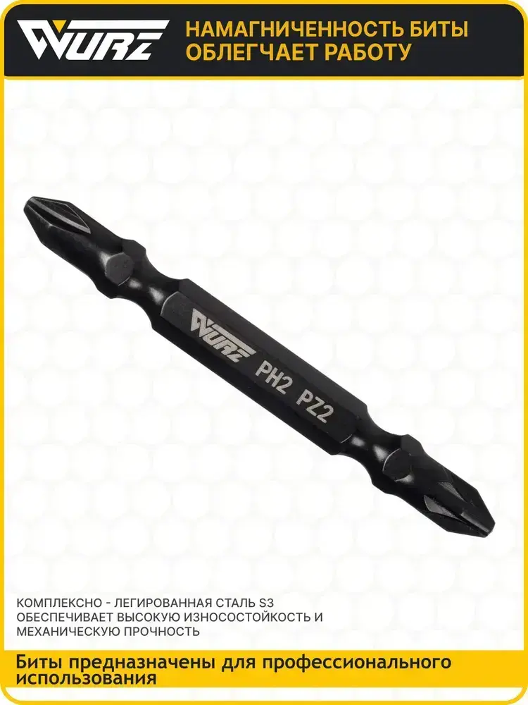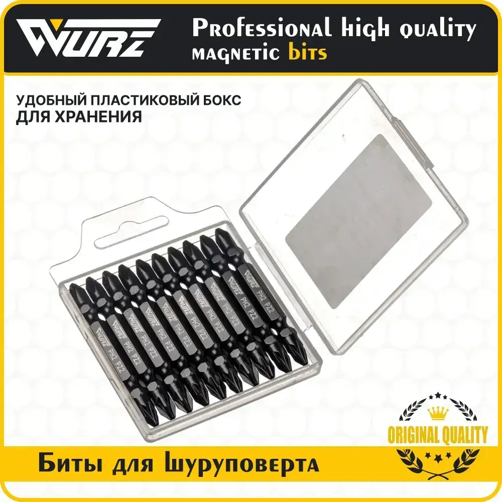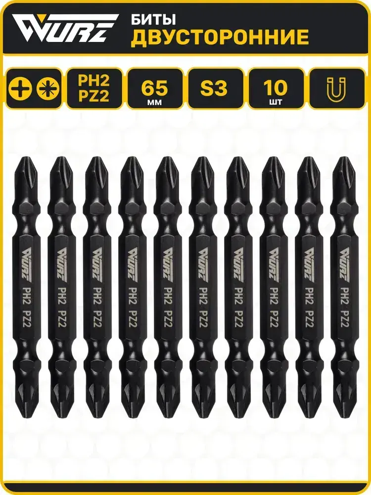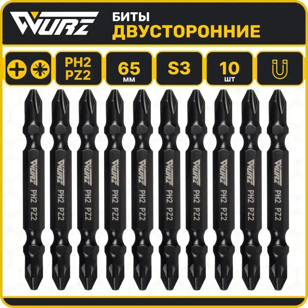 Бита PH2/PZ2 x 65мм S3 10шт. двухсторонняя намагниченная WURZ 2620