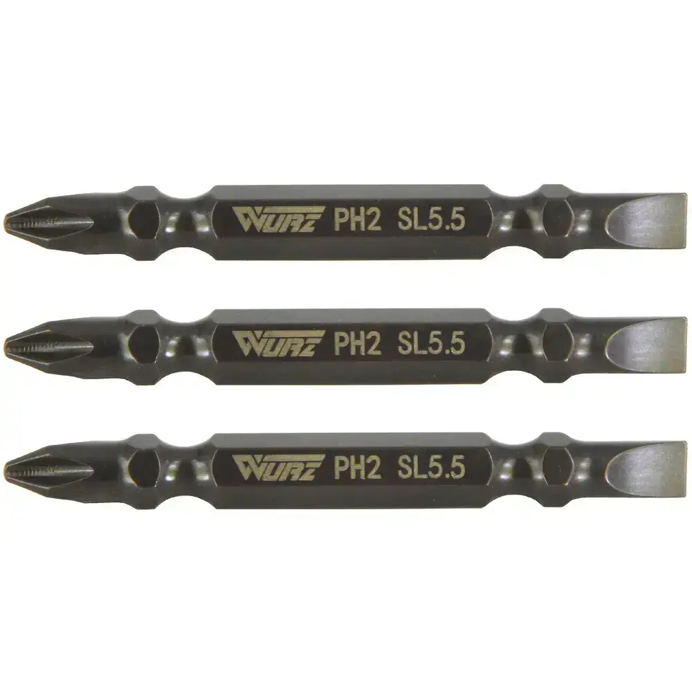 Бита PH2/SL5,5 x 65мм S3 3шт. двусторонняя намагниченная WURZ 2610-3