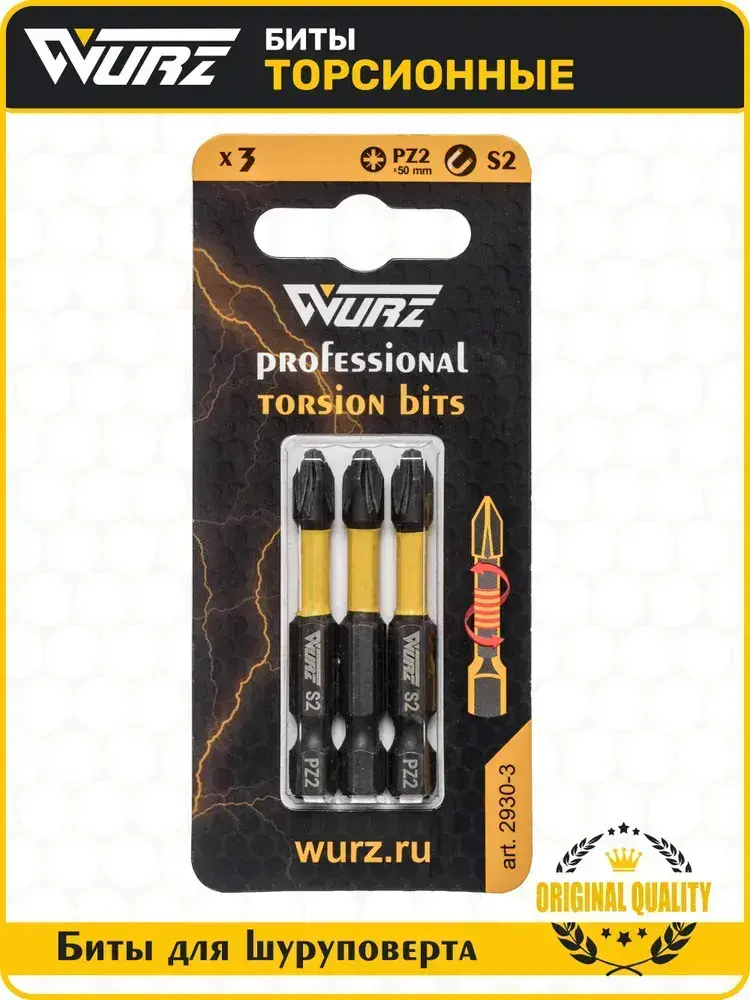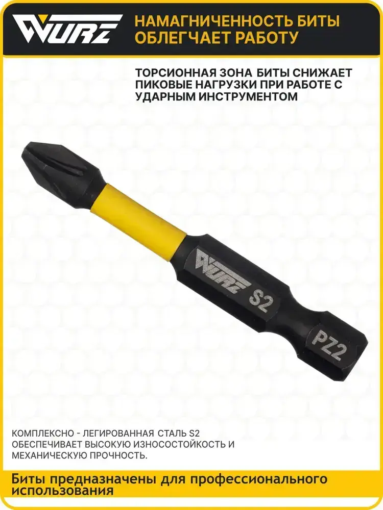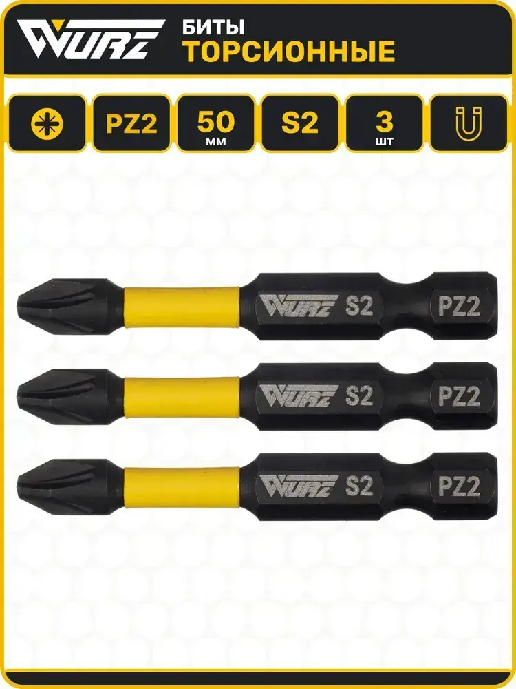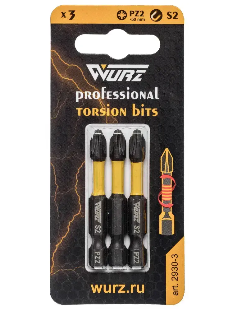 Бита PZ2 х 50мм S2 3шт. торсионная намагниченная WURZ 2930-3