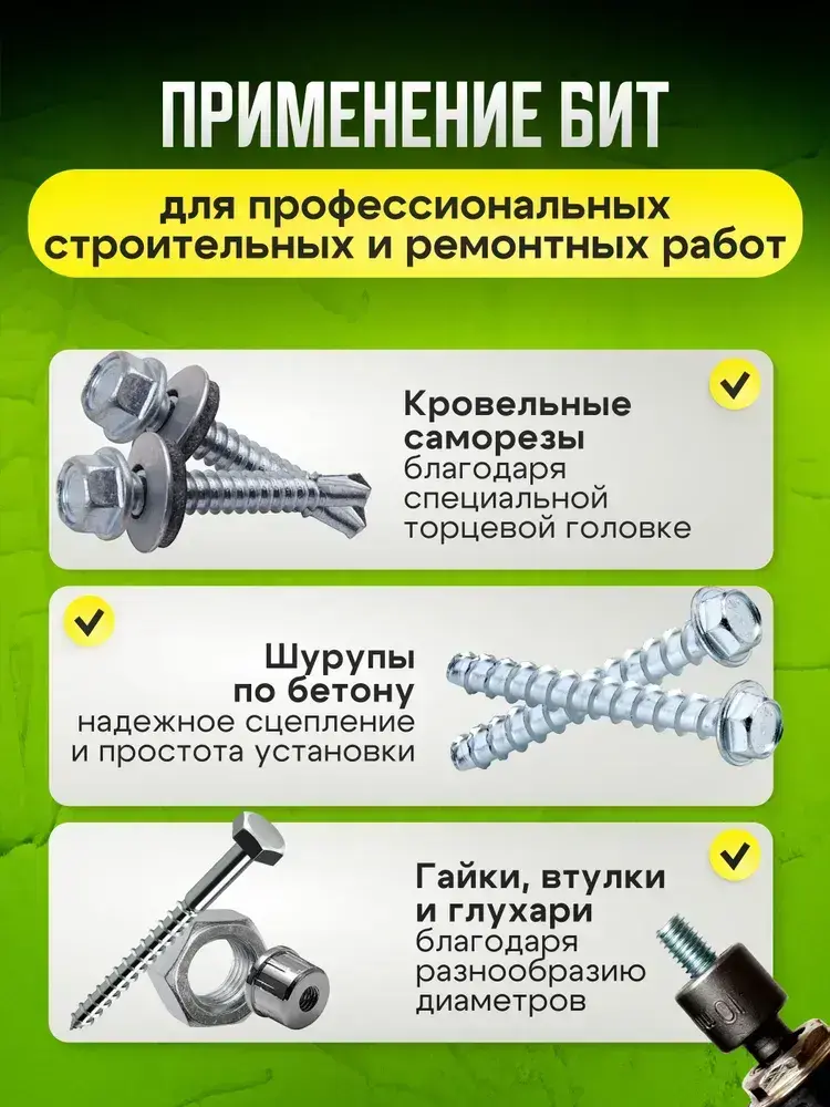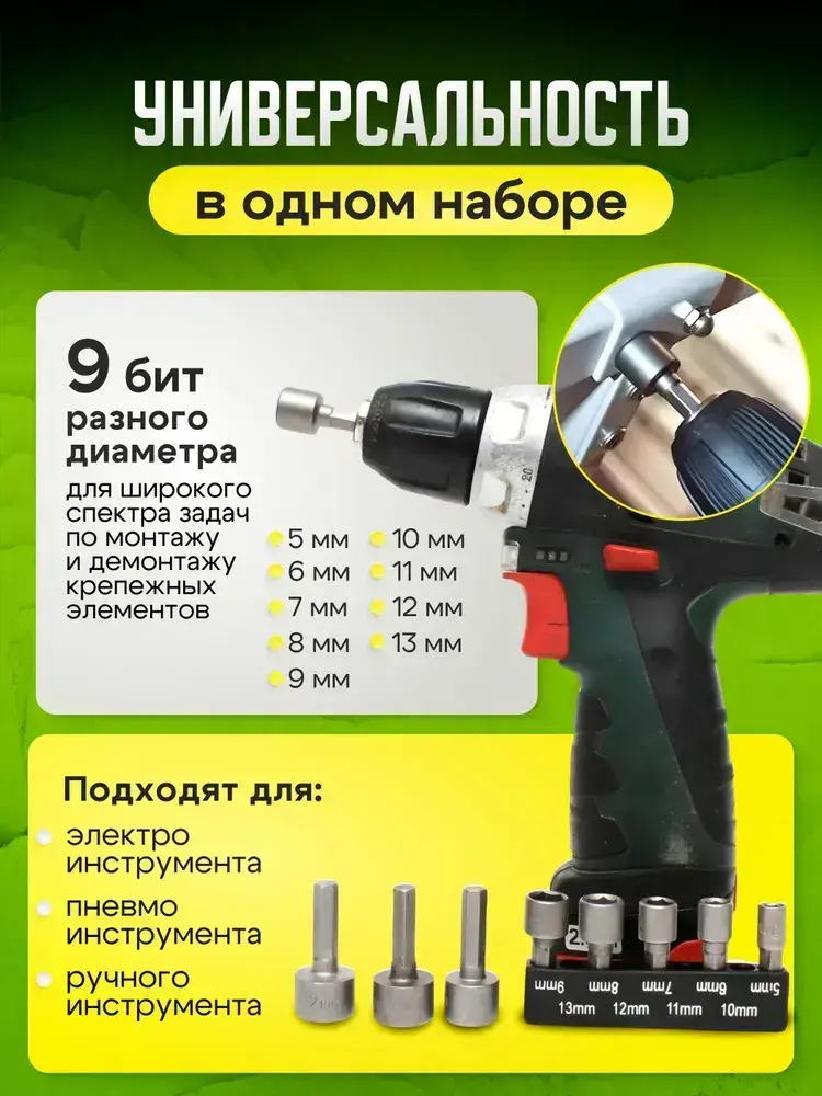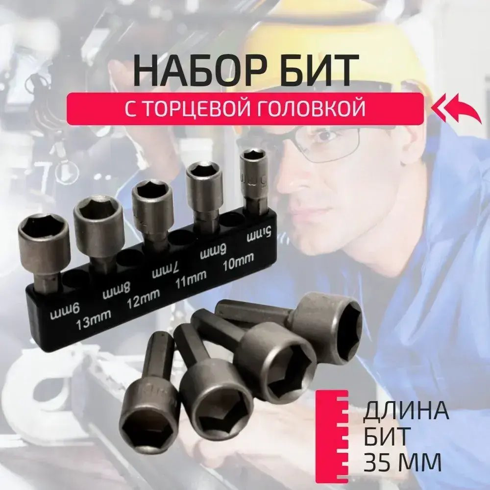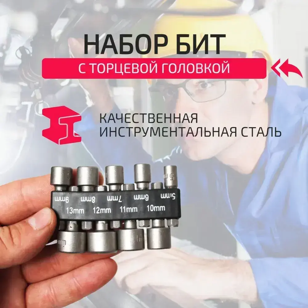 Бита с торцевой головкой для кровельных саморезов, 9 штук