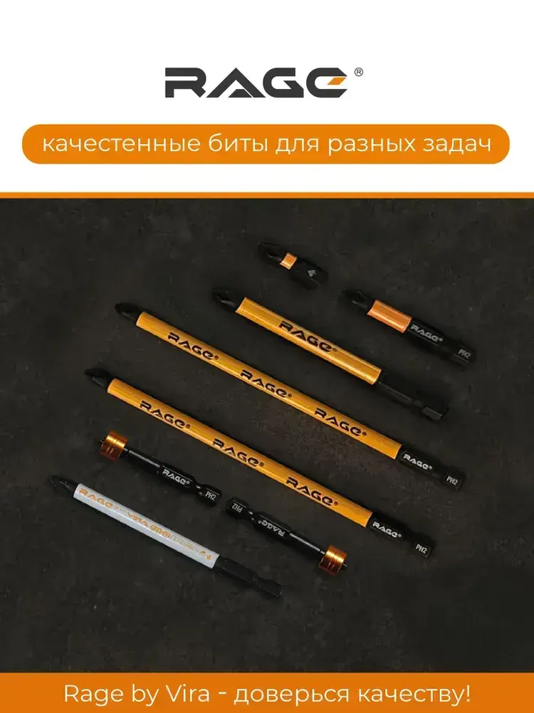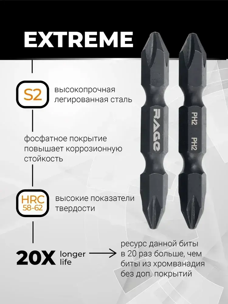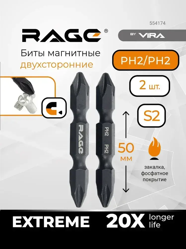 Биты двухсторонние 2 шт S2 PH2 x PH2 х 50 мм RAGE by VIRA