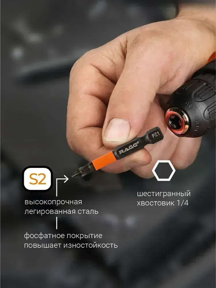 Биты магнитные S2 PZ1 x 50 мм 2 шт RAGE by VIRA
