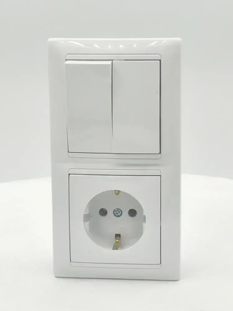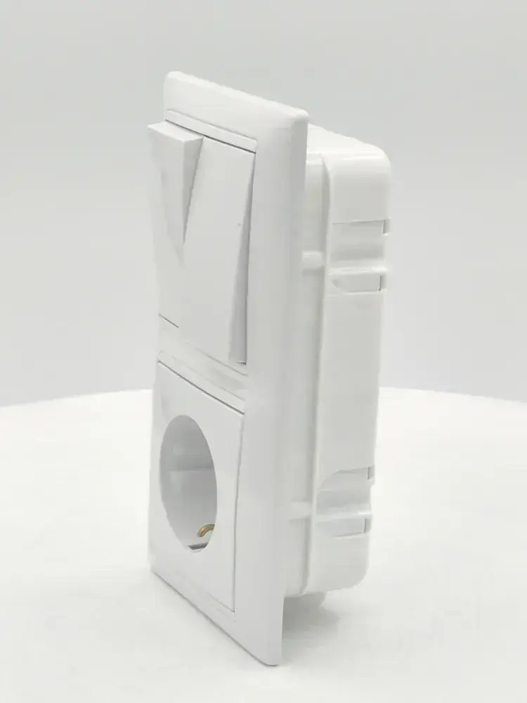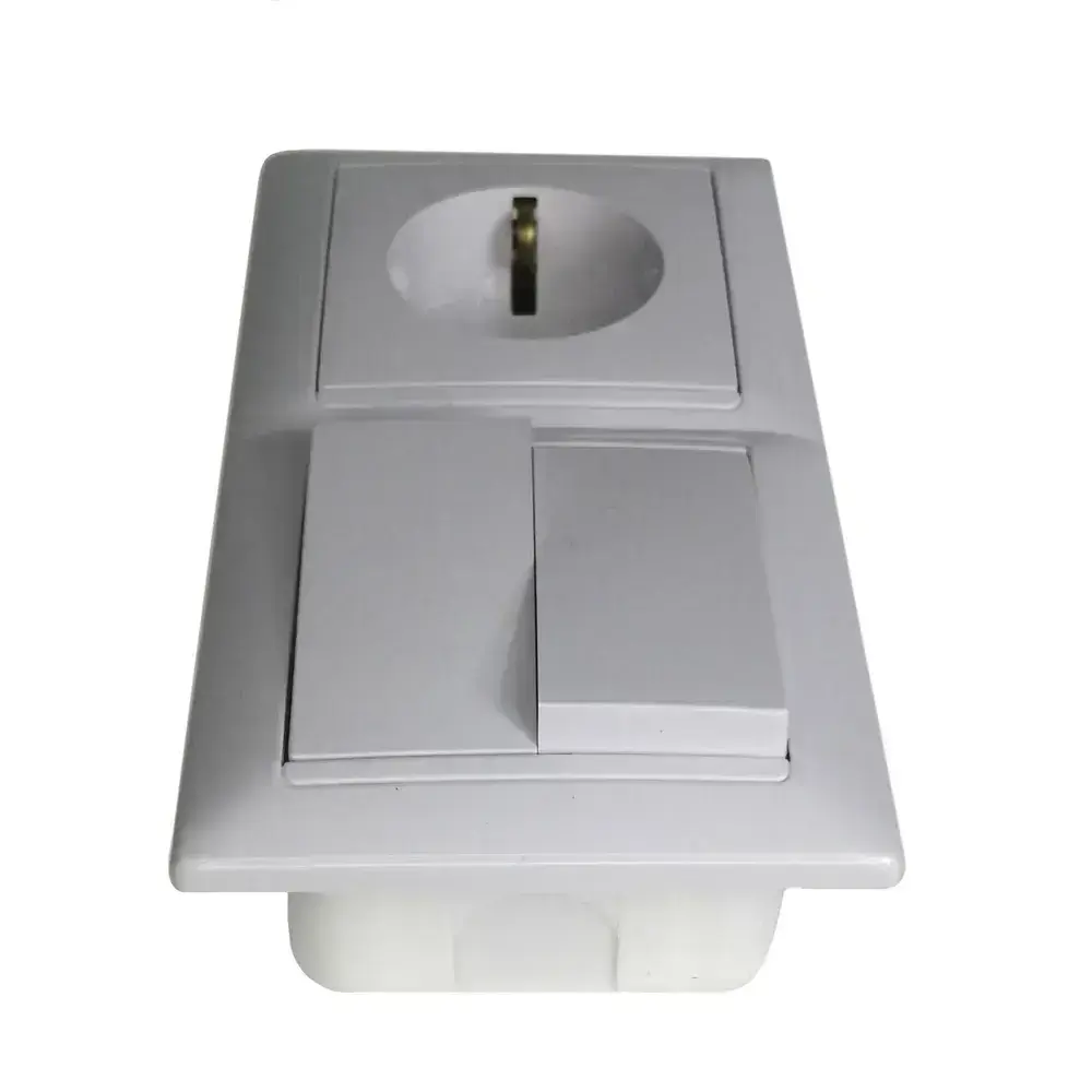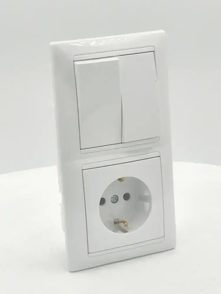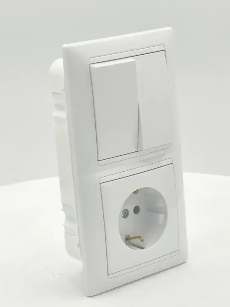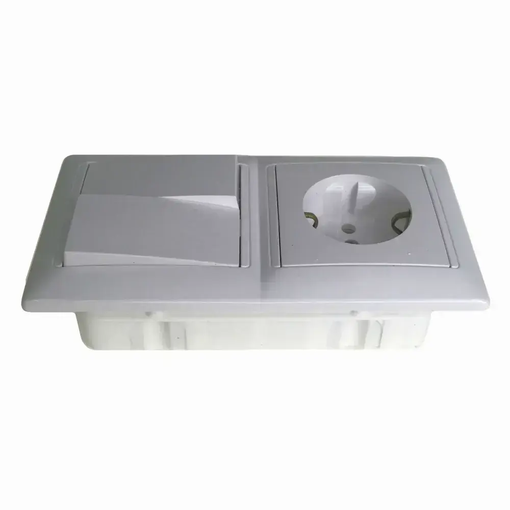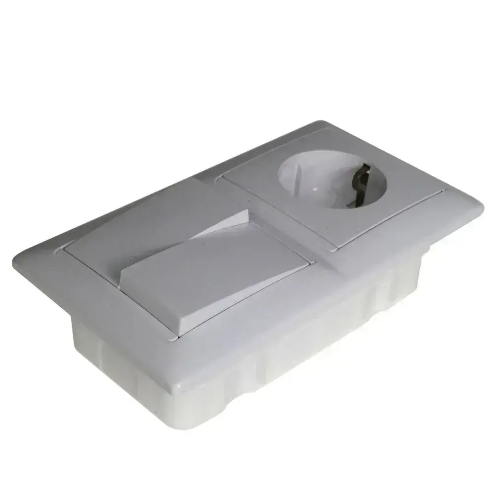 Блок Выключатель двухклавишный + розетка с заземлением скрытой установки BYLECTRICA СветоПрибор серия СТИЛЬ, белый, 2В-РЦ-693