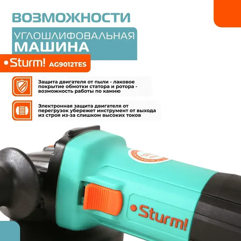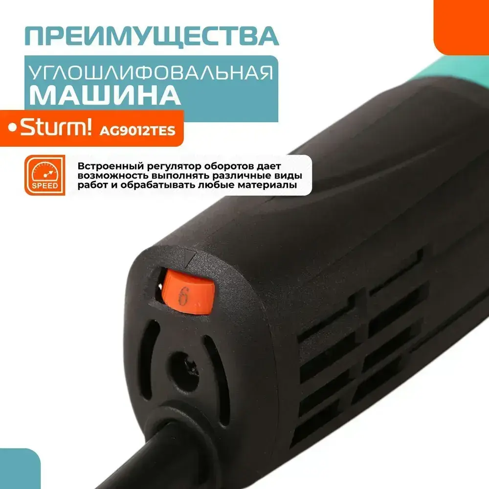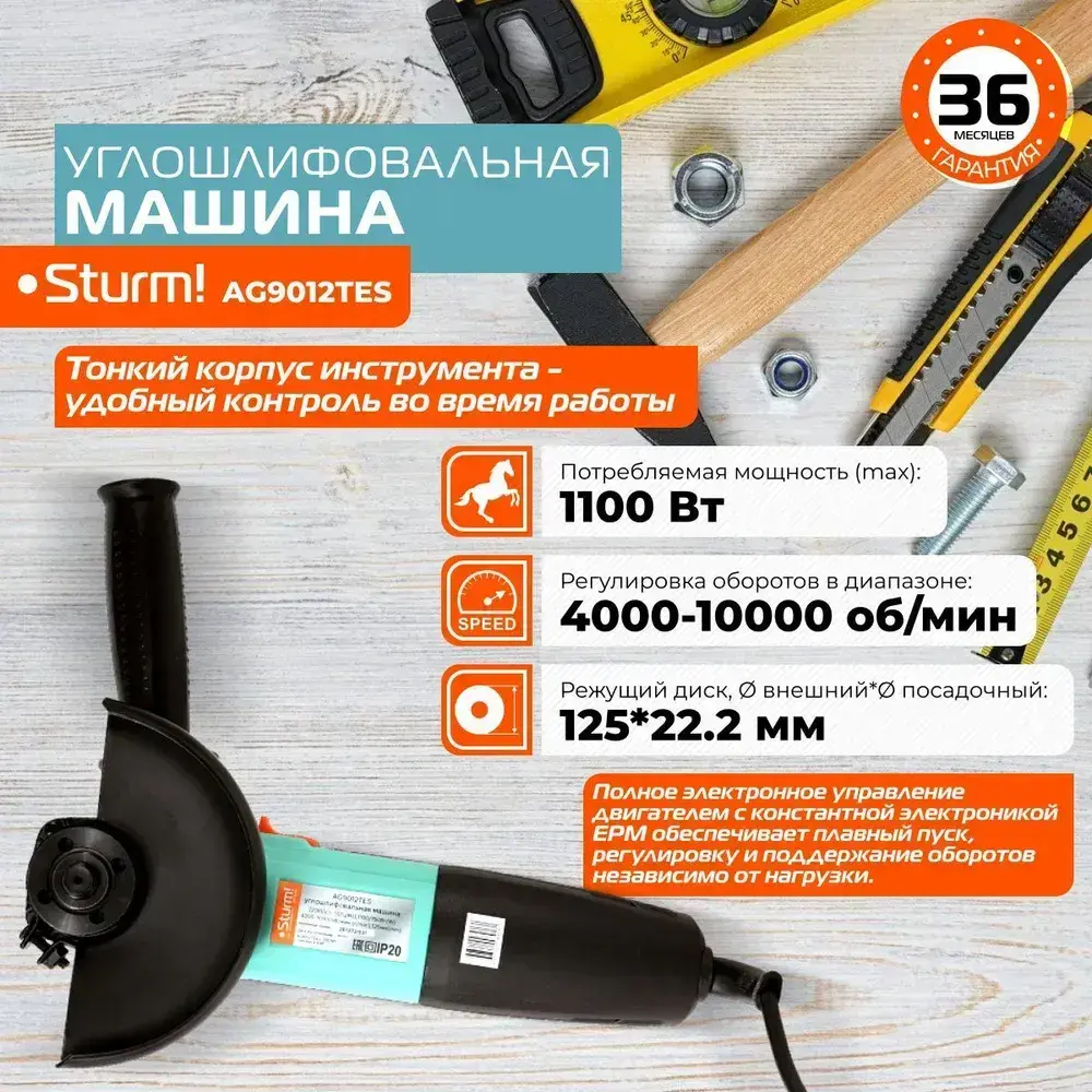 Болгарка 125 электрическая (УШМ) Sturm! 1100Вт, регулировка оборотов 4000-10000об/мин, константная электроника, кабель 2м