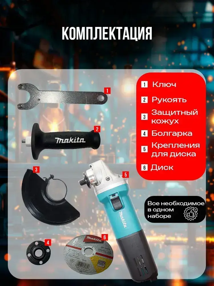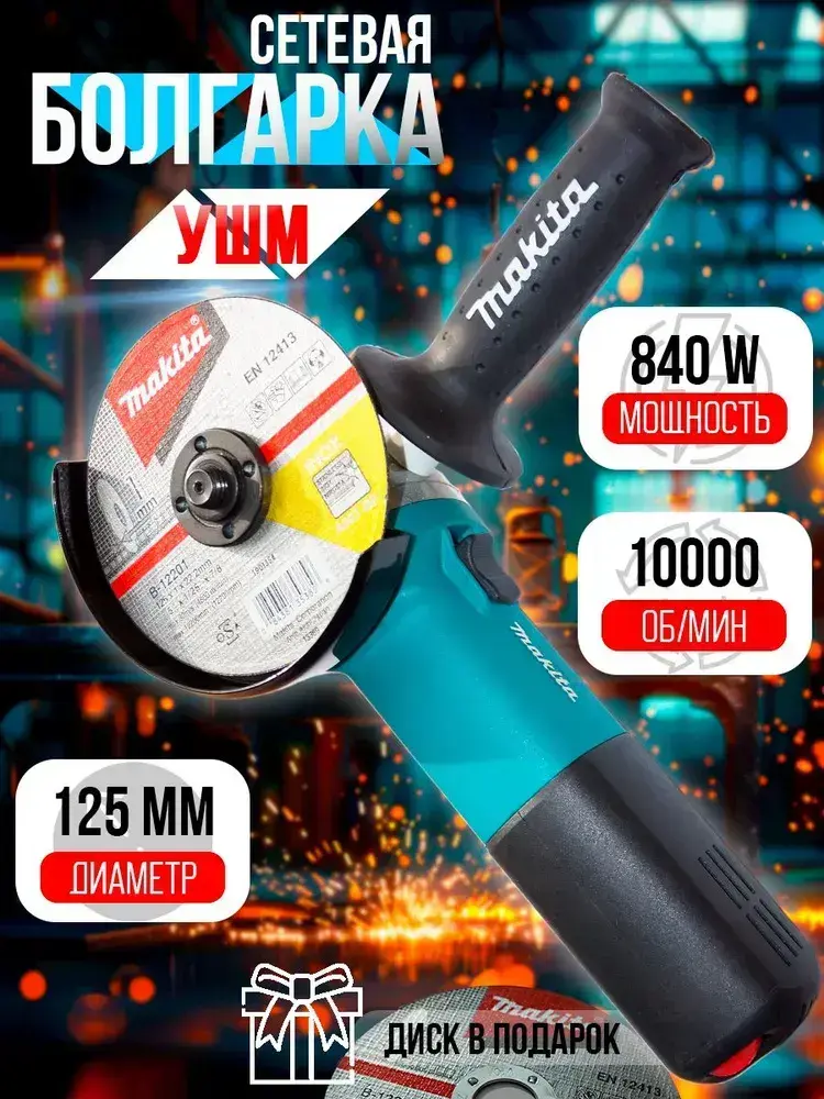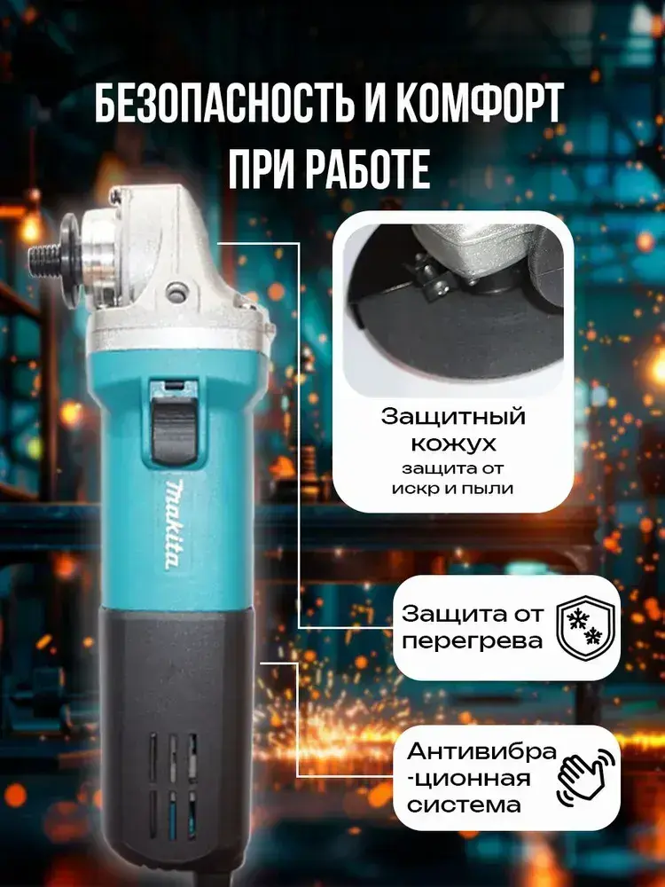 Болгарка 125 с регулировкой оборотов электрическая УШМ макита 9558HN, угловая шлифовальная машина сетевая