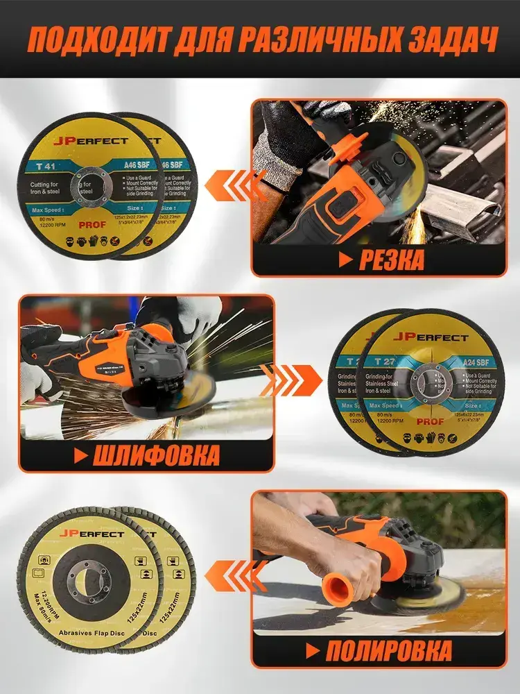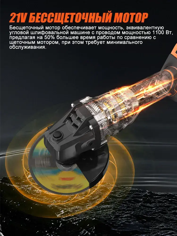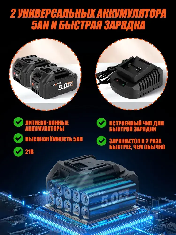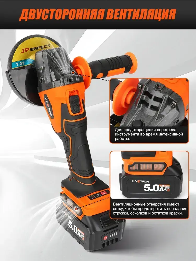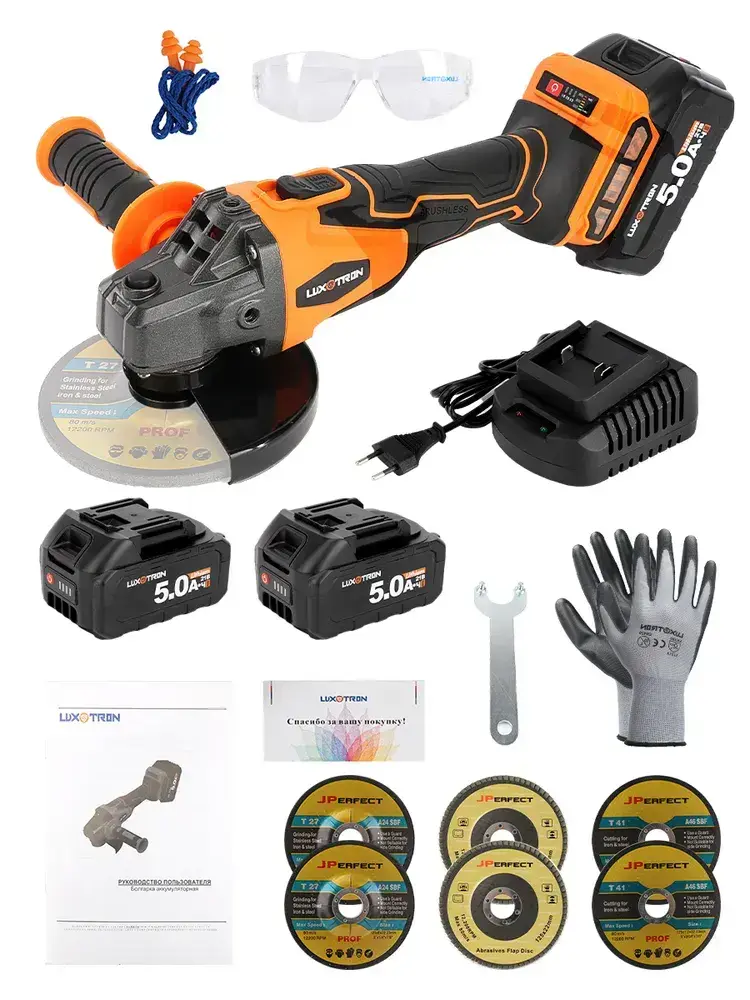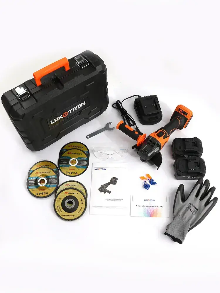 Болгарка аккумуляторная бесщеточная с регулировкой оборотов Luxotron, УШМ, 125мм, 3000-9000 об/мин, 2 АКБ 5.0 Ач, 21В, углошлифовальная машина, плиткорез электрический