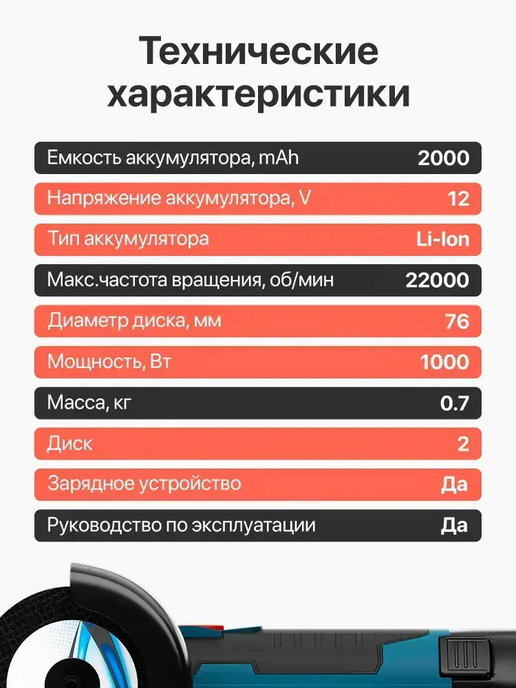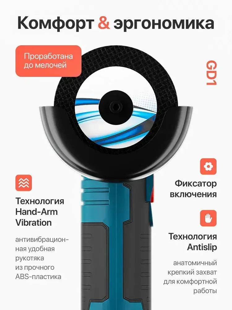 Болгарка аккумуляторная мини ушм / Угловая шлифовальная машина 19500 об/мин GD1-1