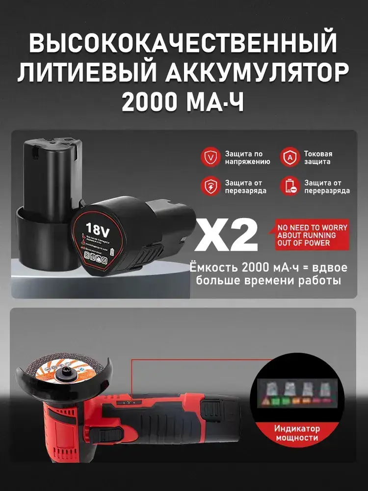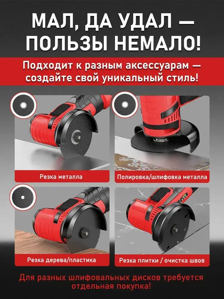 болгарка аккумуляторная шлифовальная машинка мини 1100Вт, 20000 об/мин, 18В, 78 мм, низкий шум и вибрация для резки, шлифовки, полировки, удаления ржавчины