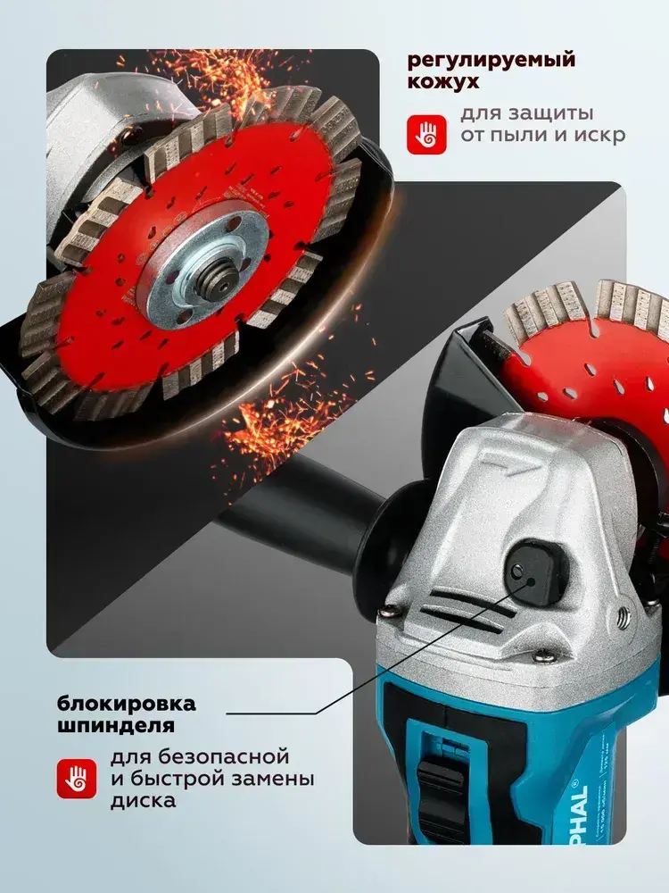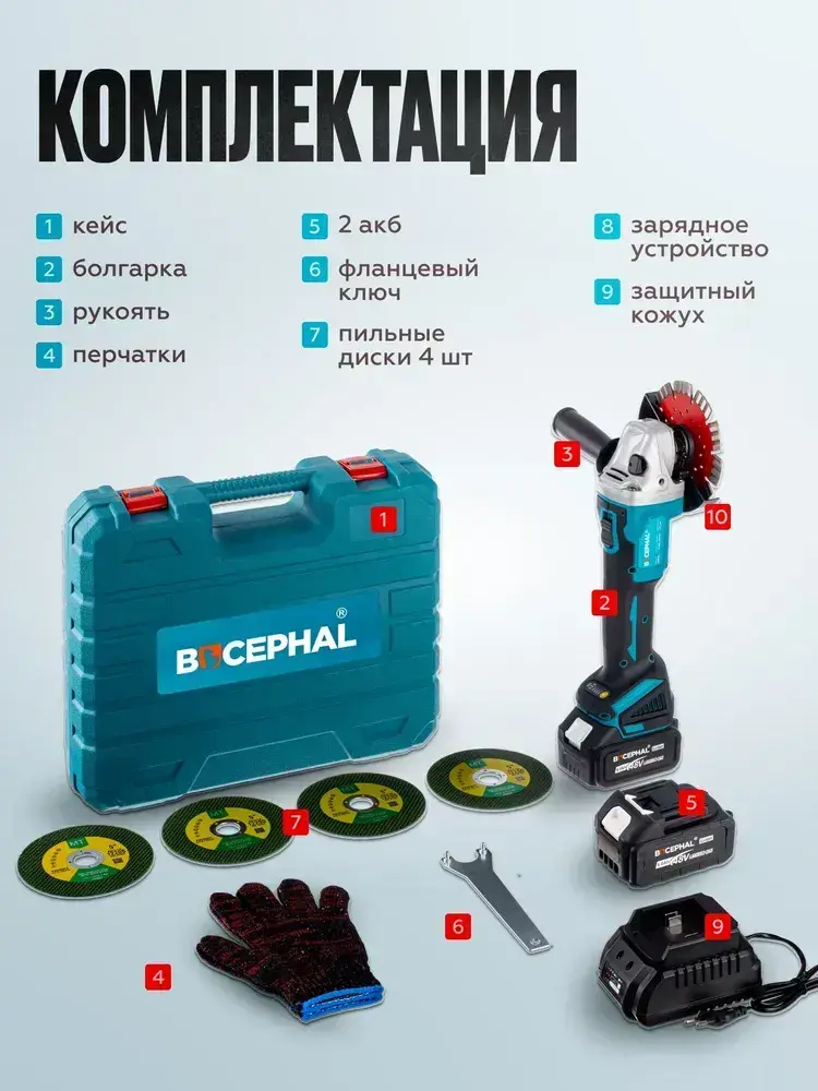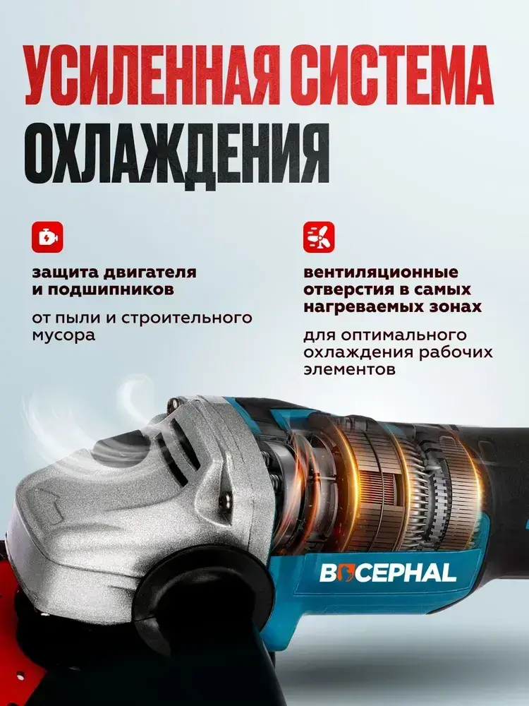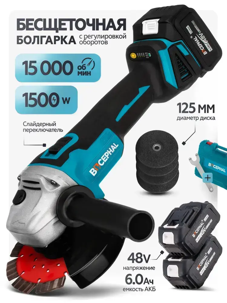 Болгарка аккумуляторная УШМ 125 мм, 48 В, 2 АКБ, бесщеточная, углошлифовальная машина, шлифмашина, в кейсе