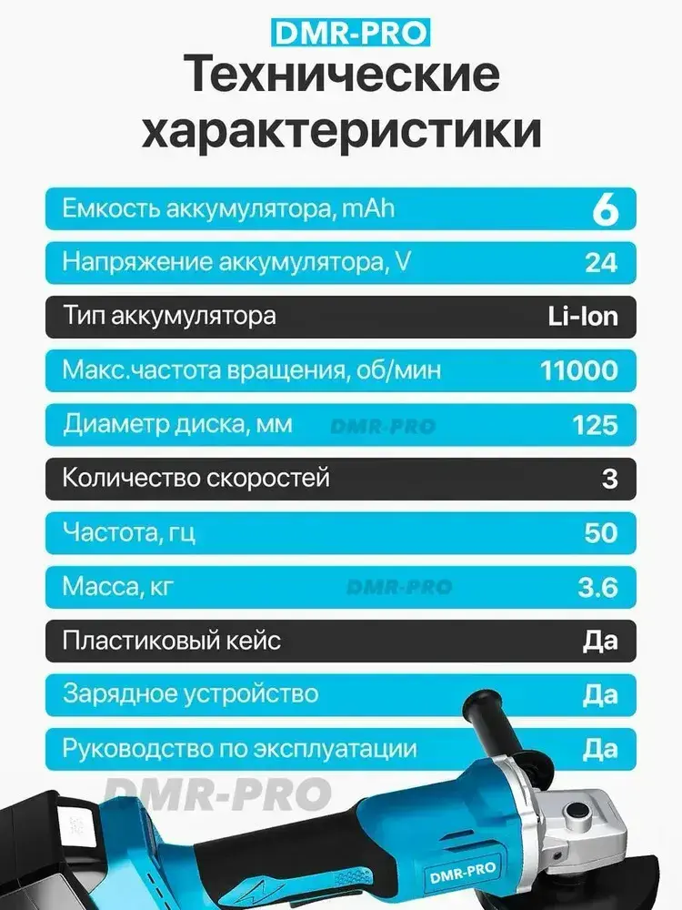 Болгарка Аккумуляторная / УШМ 125 мм аккумуляторная DMR-PRO в кейсе + 2 акб