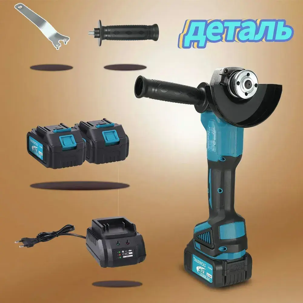 Болгарка аккумуляторная/Углошлифовальная машина бесщеточная, аккумуляторная, 2 АКБ 4.0 А/ч, диск 125 мм