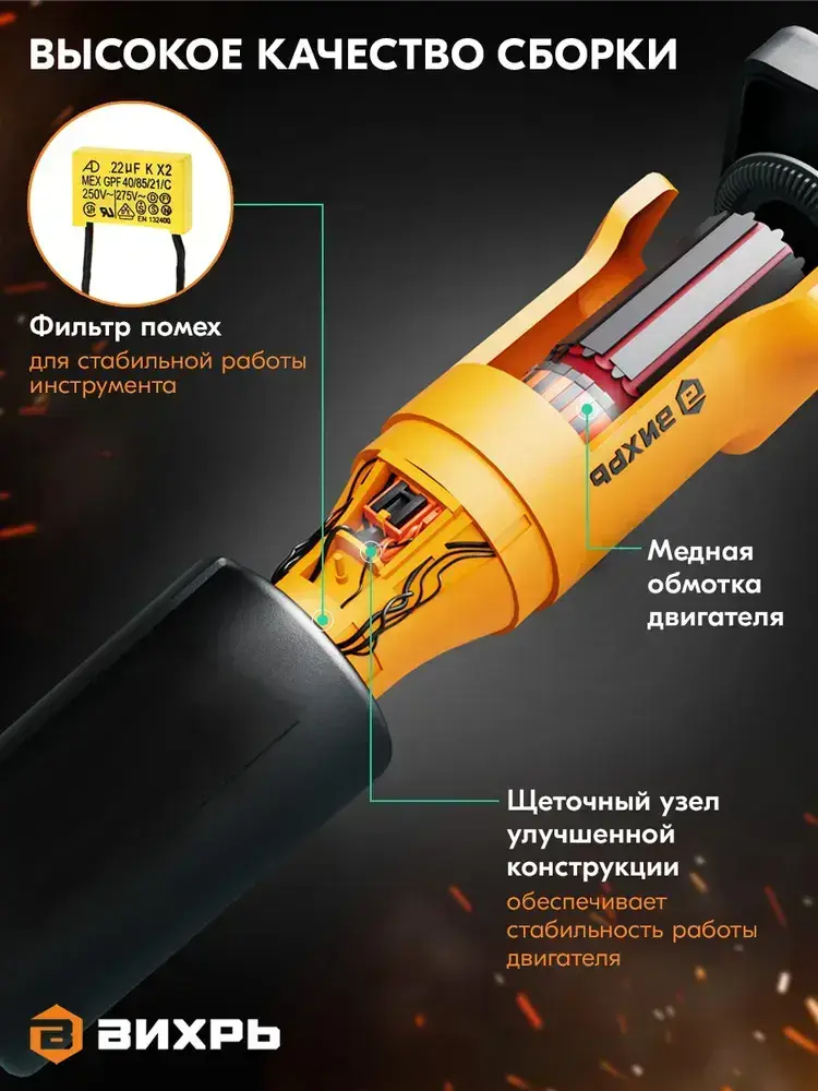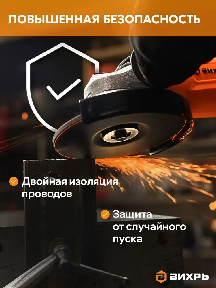 Болгарка электрическая 150мм, 10200 об/ мин, болгарка УШМ-150/1300 Вихрь ,двухпозиционная рукоять