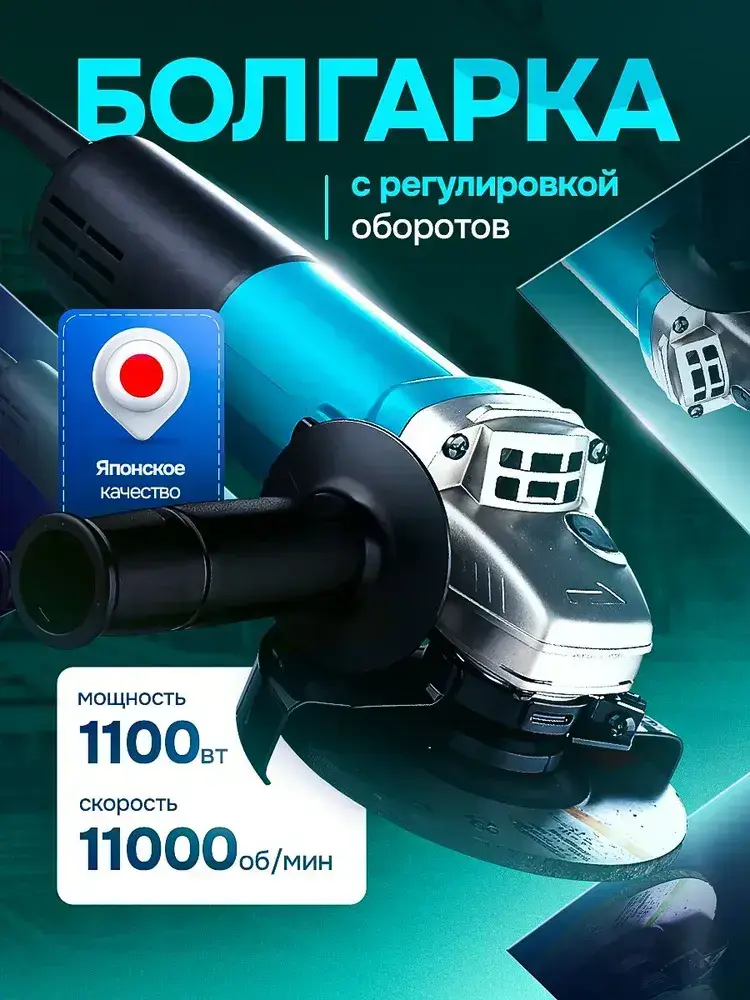 Болгарка УШМ с регулировкой оборотов 9558HN Шлифмашина угловая 1100W 12000 об