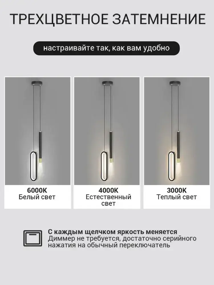 BOMOX Подвесной светильник лофт, светодиодный люстра потолочная, 3 режима освещения (3000-6000 К)