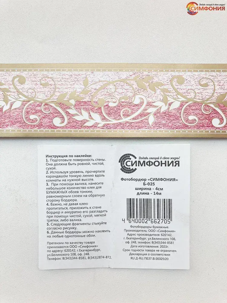Бордюр для обоев (бордюр бумажный комплект) "Симфония" ширина 4 см., длина 14 м.