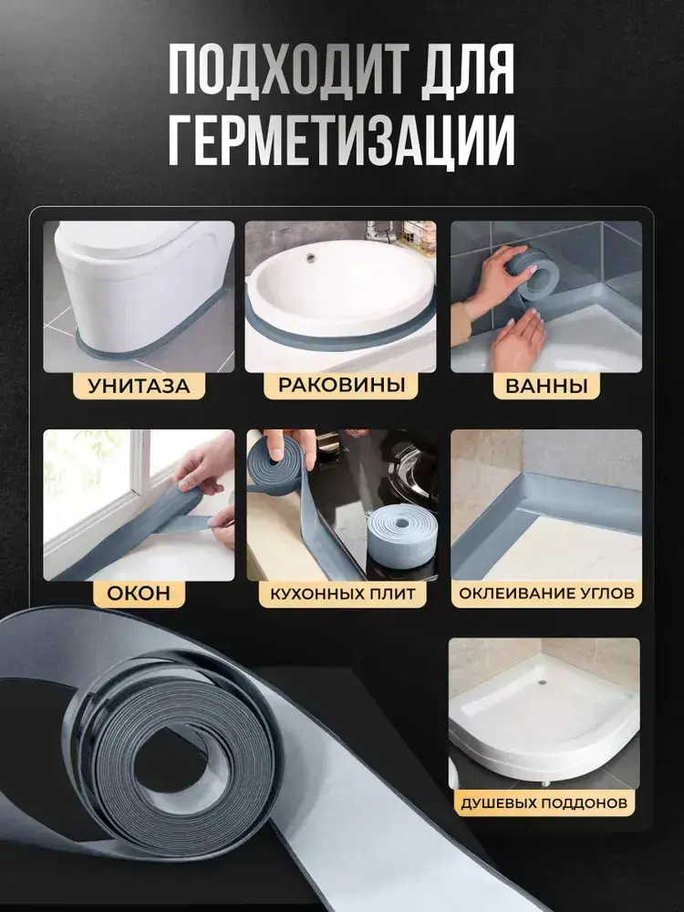 Бордюрная лента для ванны и кухни 60мм 3,2м. Самоклеящаяся декоративная клейкая лента серая, декоративный скотч