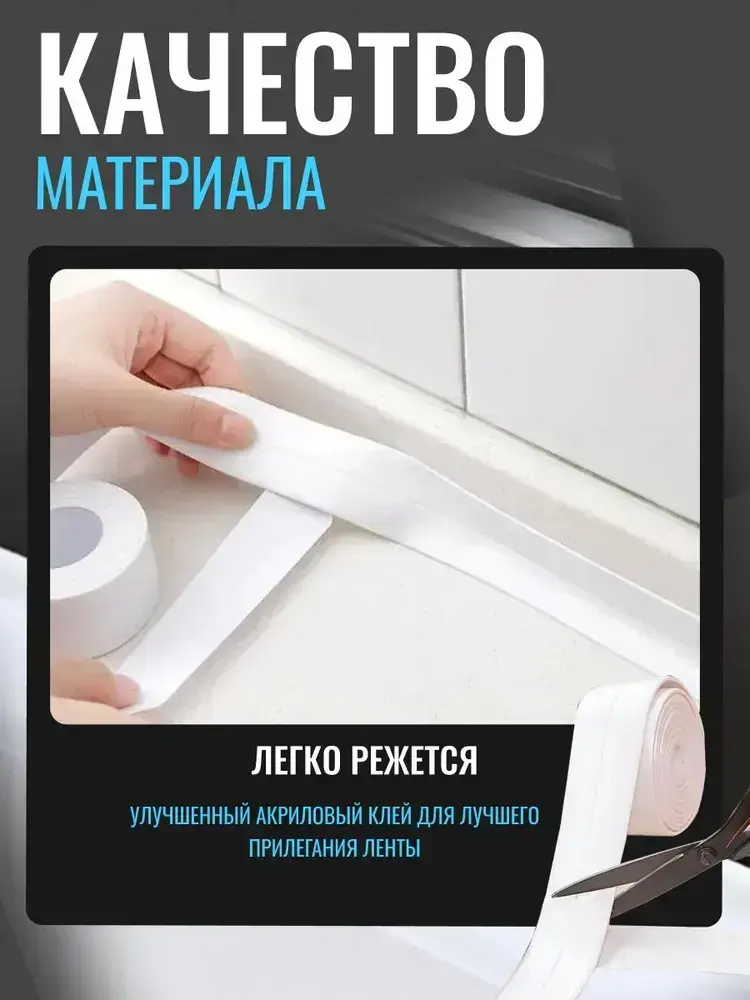 Бордюрная лента для ванны и кухни белая, 60мм*3,2м самоклеящаяся декоративная клейкая лента белая