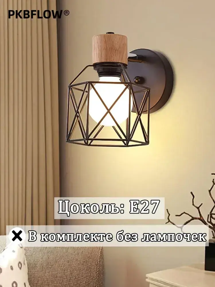 Бра настенный из натурального дерева,Настенный светильник,В комплекте без лампочек,E27