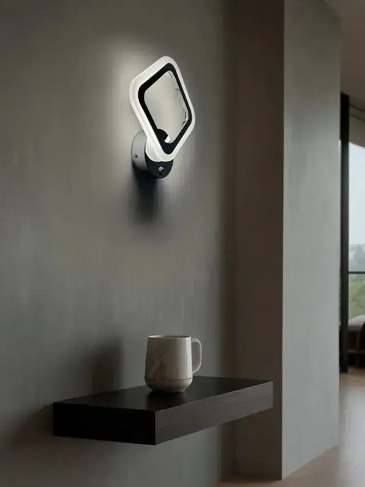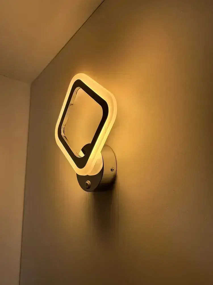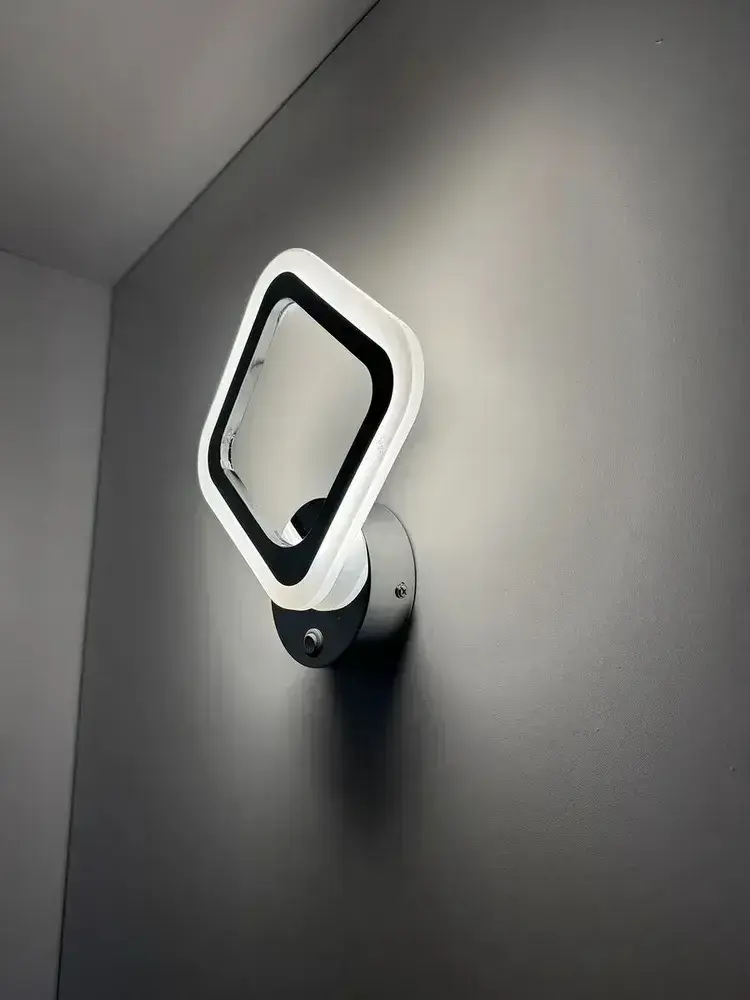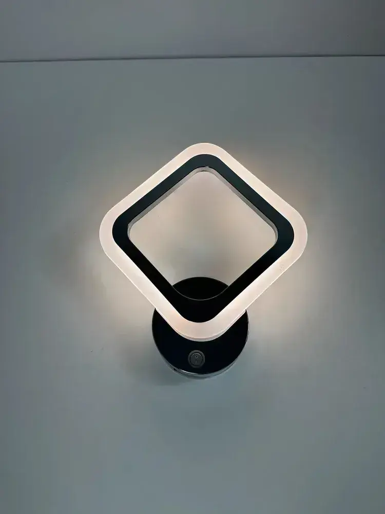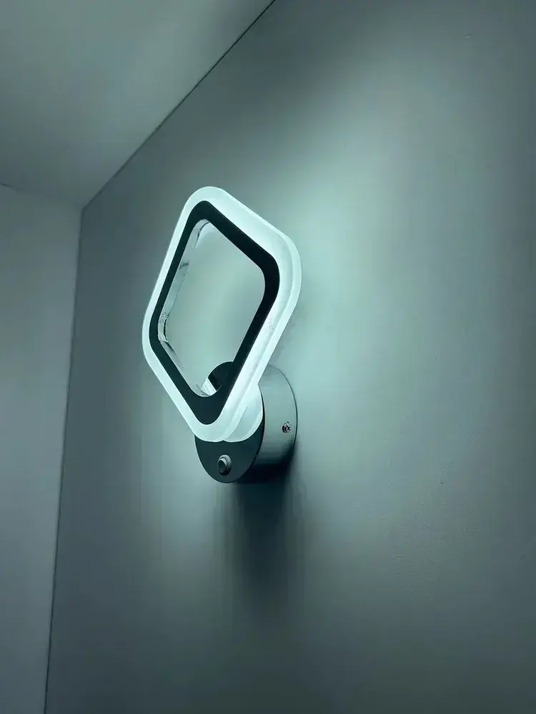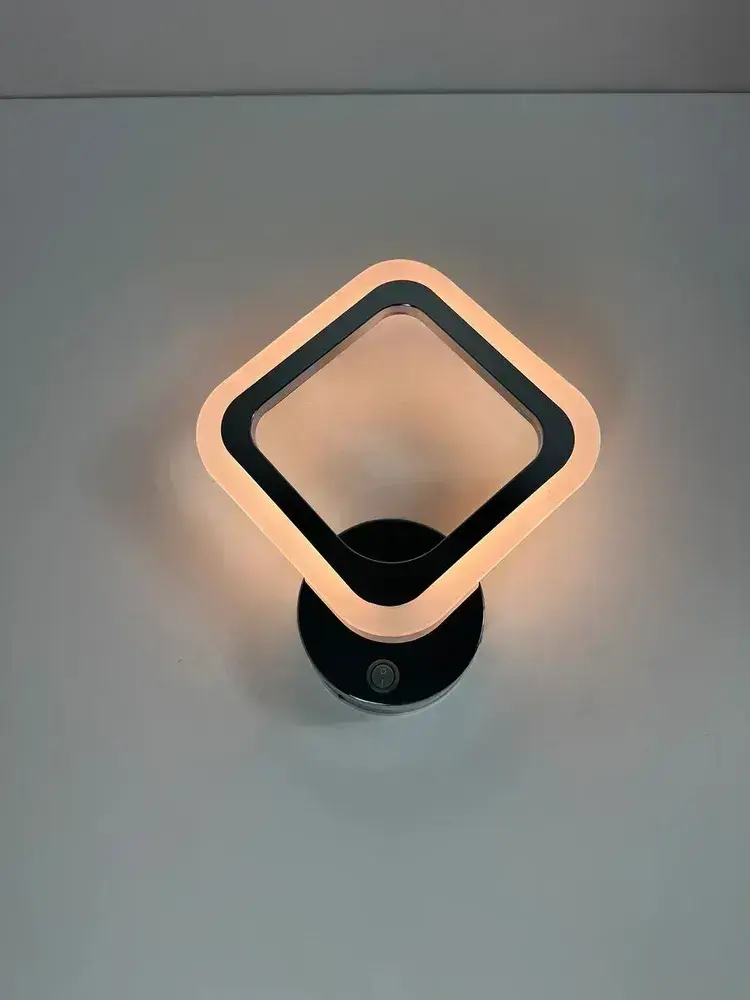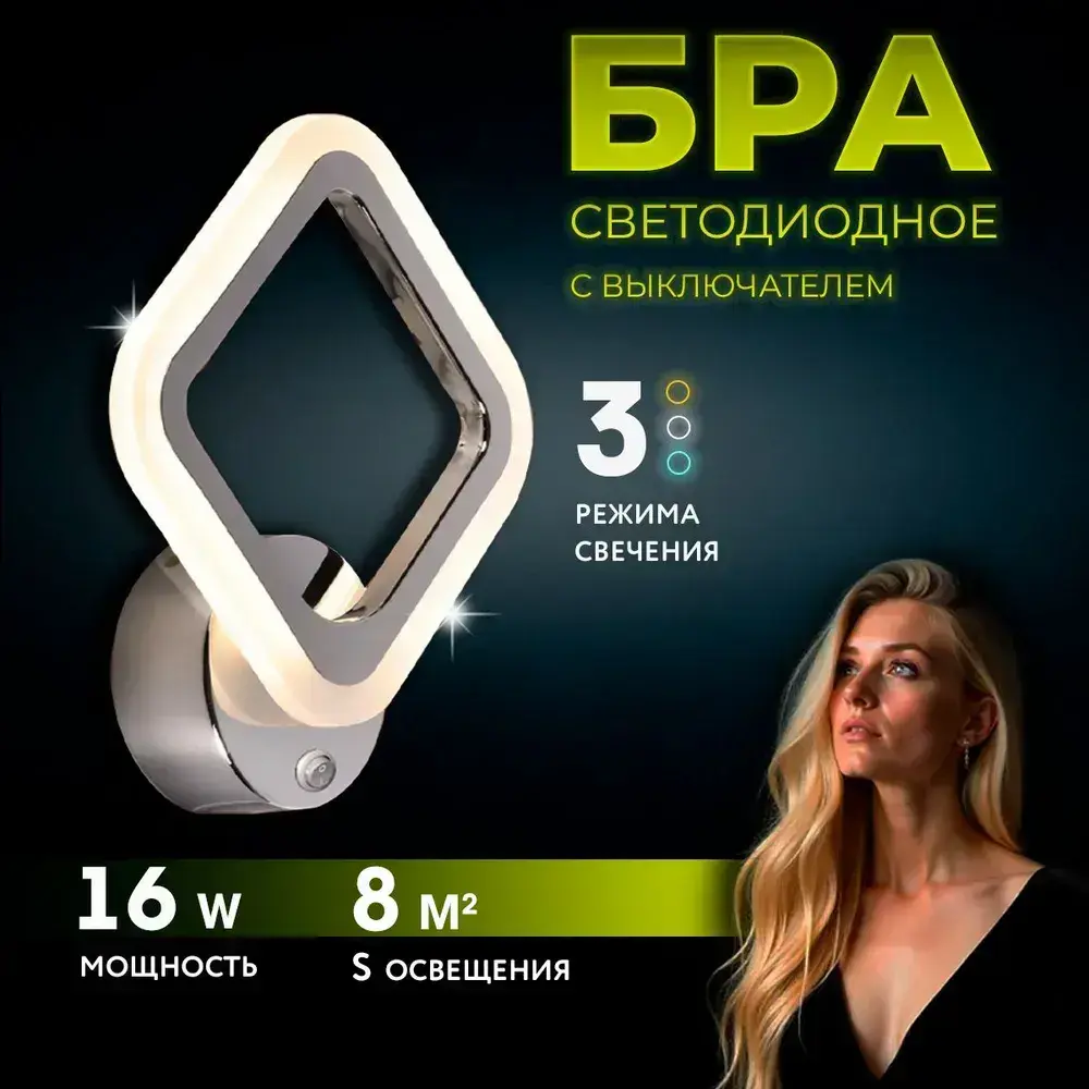 Бра с кнопкой, настенный светодиодный светильник хром, ромб, квадрат 8822/1 хром, 16 ВТ, комнатное освещение 5 кв. м.
