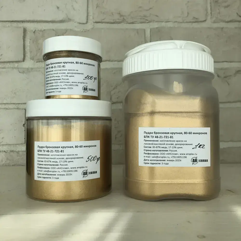 Бронзовая пудра БПК 100 гр, пигмент бронзовый 80-60 микронов (металлическая пудра) для краски и декора, крупная