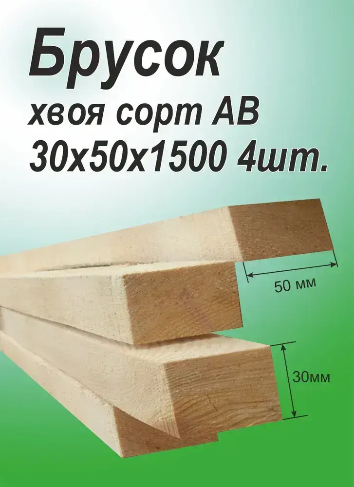 Брусок деревянный 30х50х1500 мм, хвоя, 4 штуки